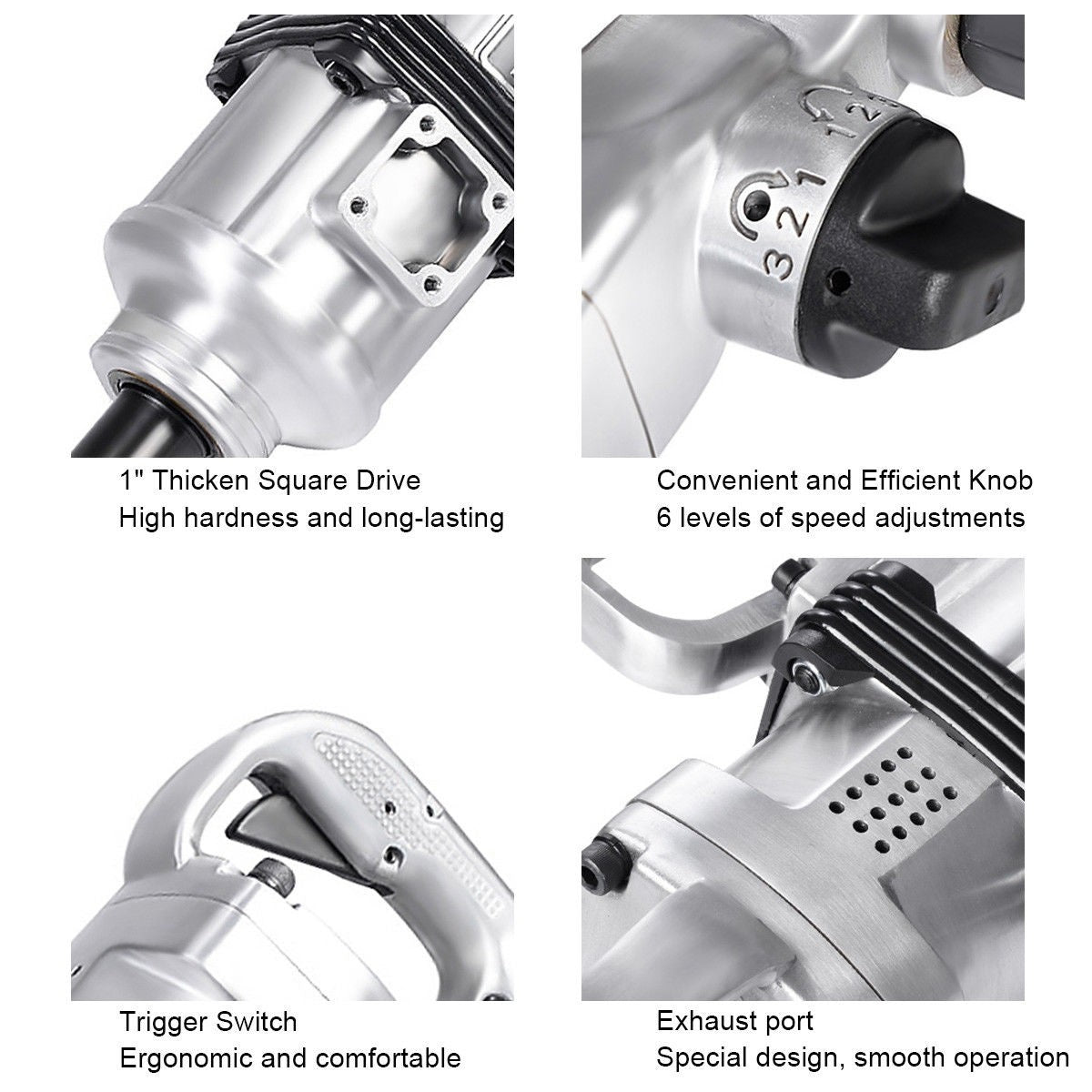 1" Air Impact Wrench Gun Heavy Duty Pneumatic Tool Long Shank Commercial Truck Mechanics w/Case