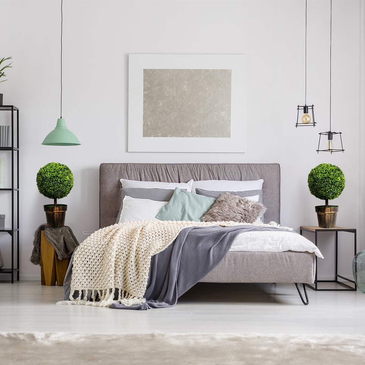 Are you still bothered by the dead plants? These 2 pcs round artificial boxwood topiary trees are the perfect solution for you!