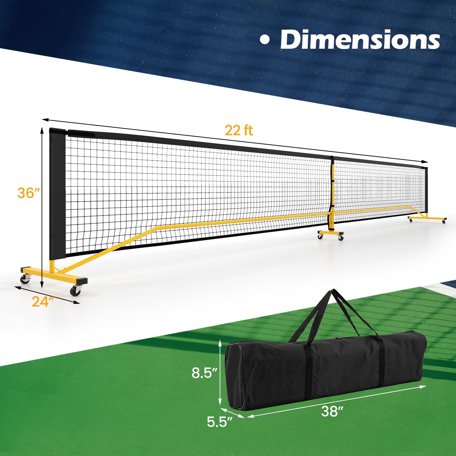 【Stlye: Yellow+Black Pickleball Net, w/6 Lockable Wheels】