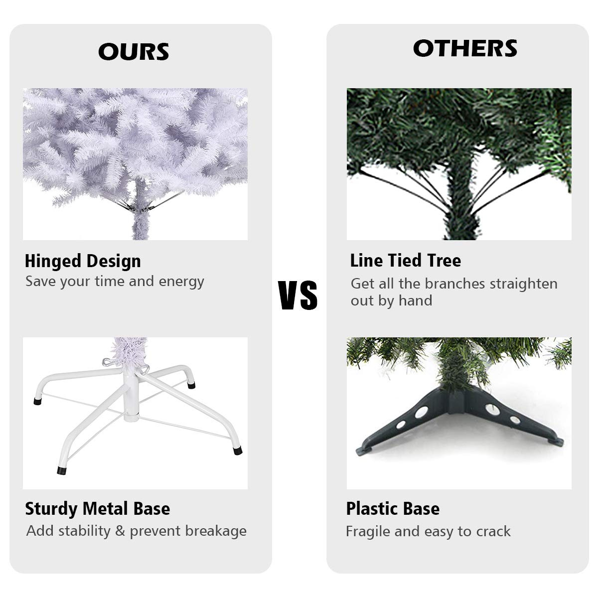 - Sturdy Metal Stand - Equipped with a sturdy iron stand, this Christmas tree is stable and durable for a long lifespan. Compared with cheap plastic stands, our metal stand will provide the tree with greater support and balance, keeping it standing upright and preventing breakage.