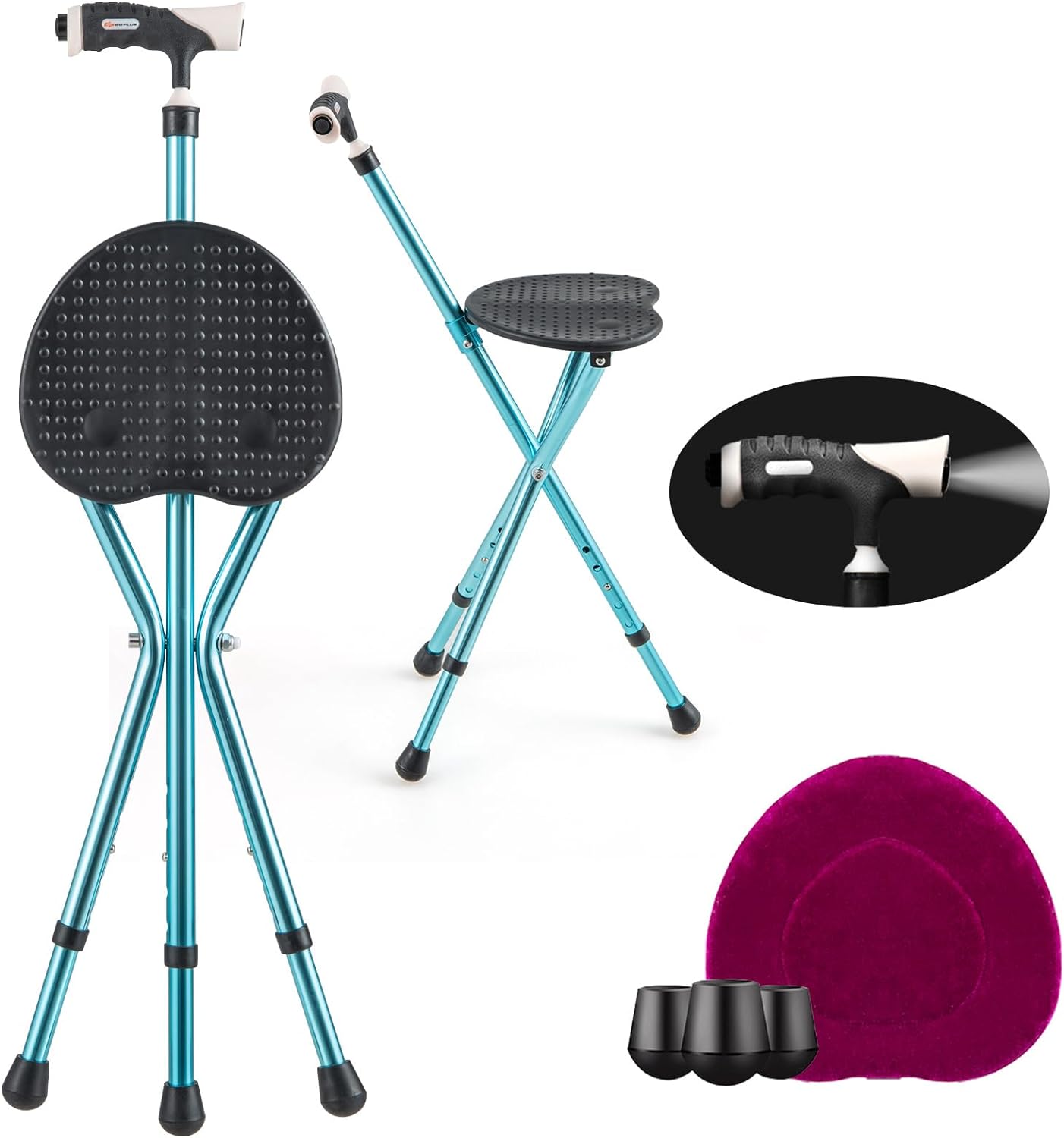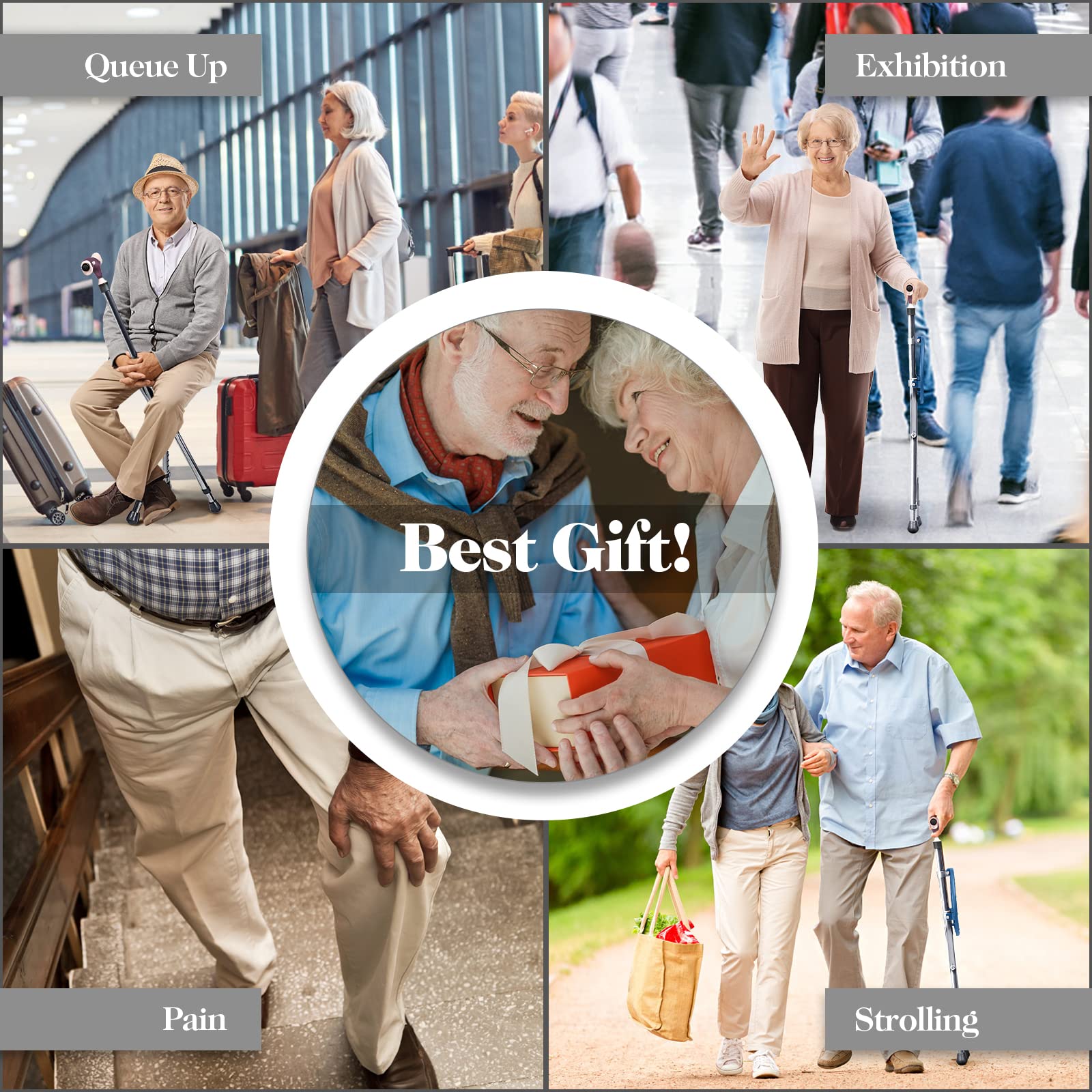 - Best Gift for the Elderly -- When folded, it can be used as a crutch to help the elderly move forward. When unfolded, it can be used as a stool, which is perfect for trade fairs, waiting in line, traveling, or resting after shopping. (Free gift: 1 cushion cover and 3 foot pads)