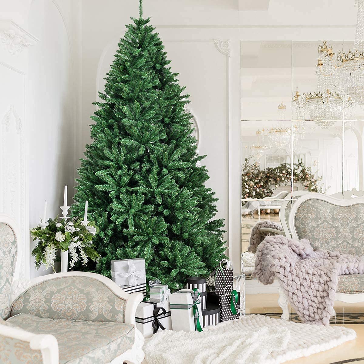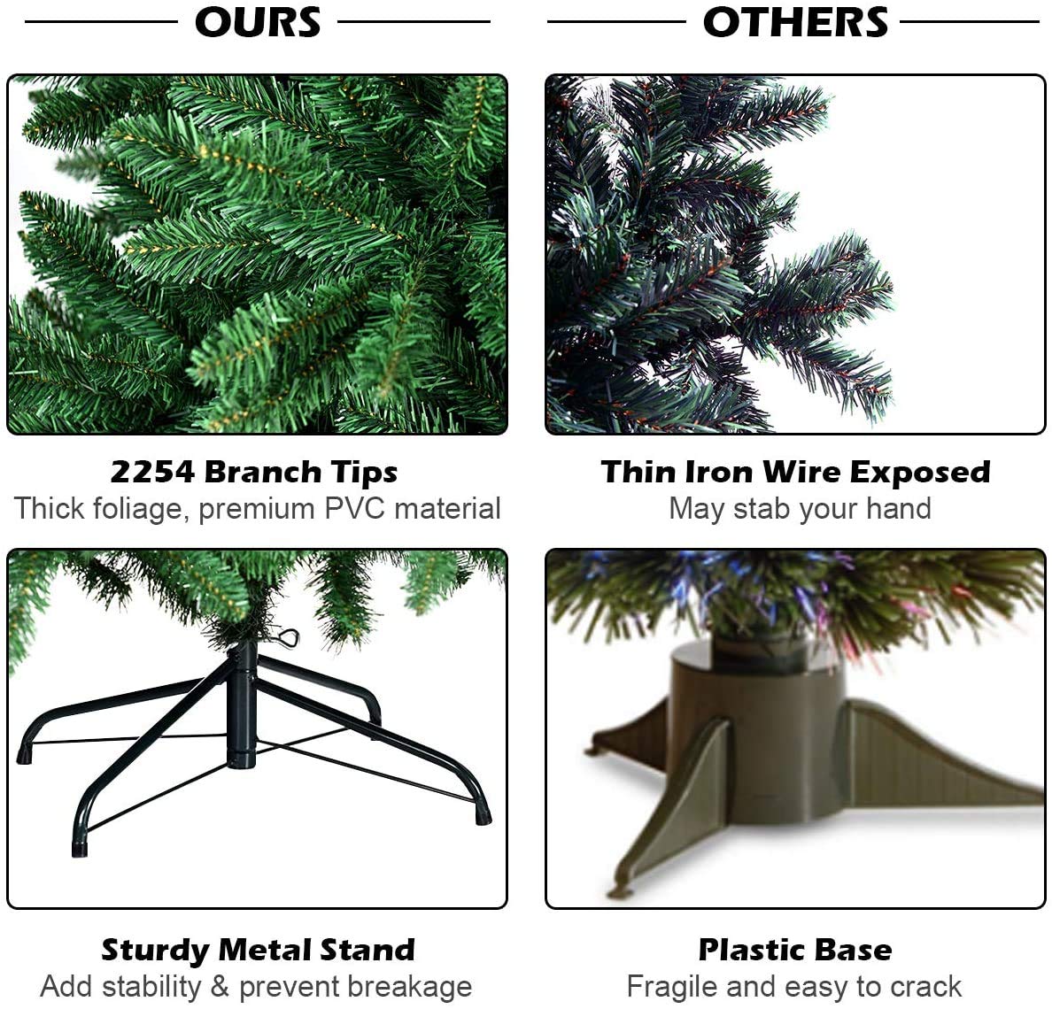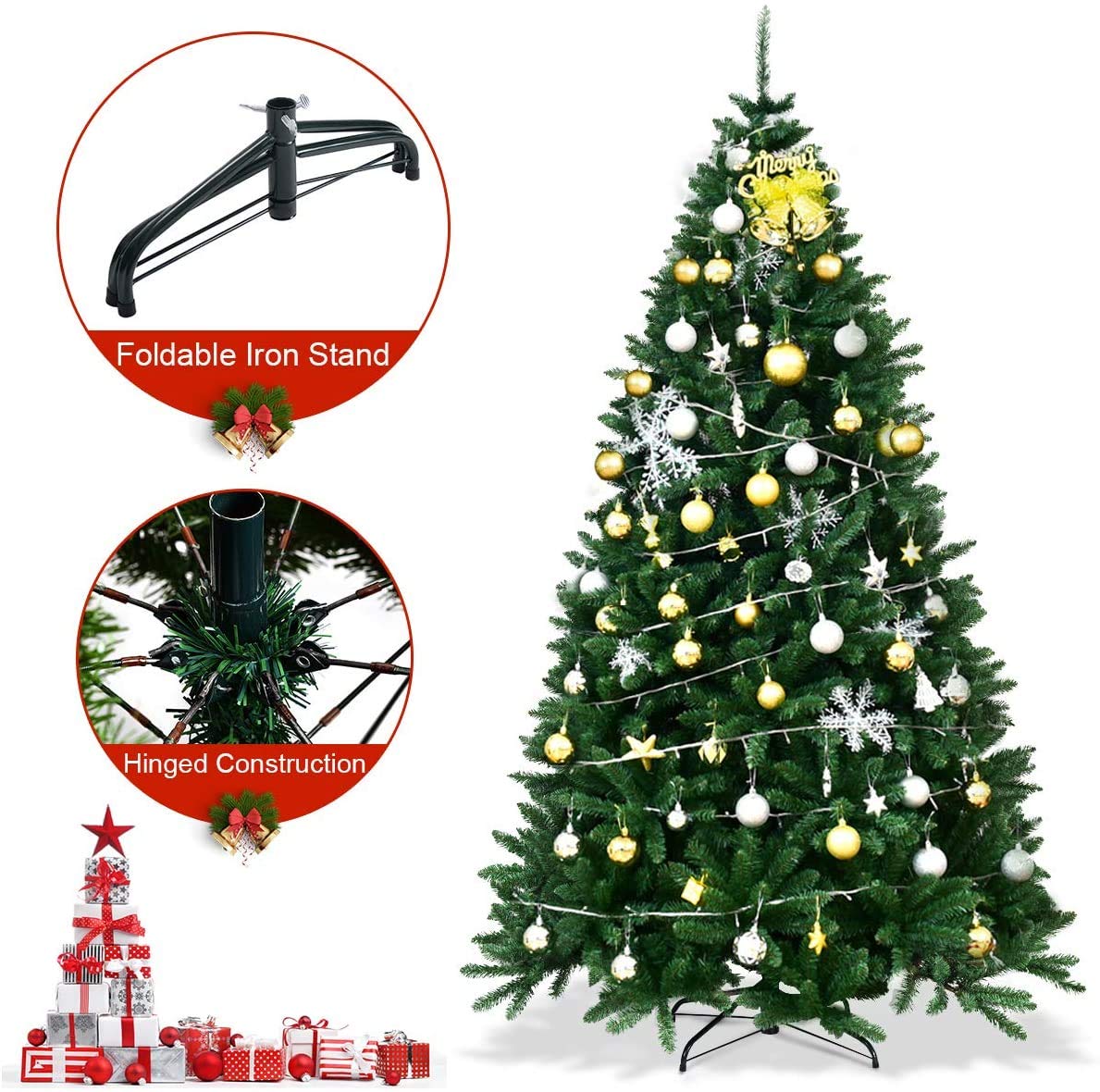 - Simple Style & Realistic Appearance -- Crafted with 2254 branch tips, the 6 ft artificial Christmas tree is leafy and will give you a realistic look. Featuring a generous and simple style, there are no extra decorations on the tree, offering you plenty of space to hang ornaments. Accordingly, you can decorate it with Christmas stockings, colored balls, and lights according to your preference or the style of the room.