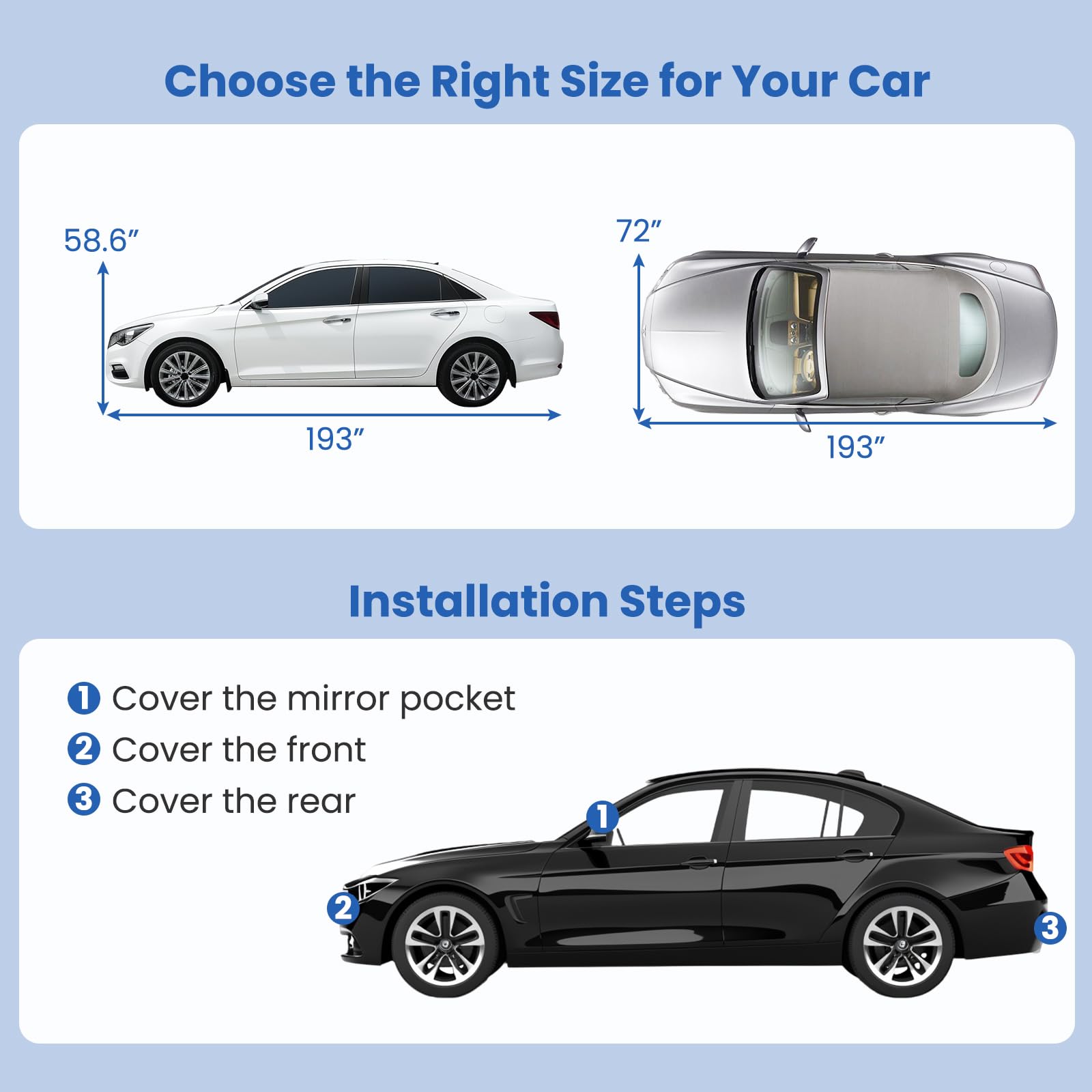 ● Perfect Fit for Sedans: Specifically designed to fit sedans up to 193"L x 72"W x 58.6"H, the car cover is the ideal choice for popular models like Chevrolet Camaro, Ford Mustang, Honda Accord, Nissan Altima, and Toyota Camry.