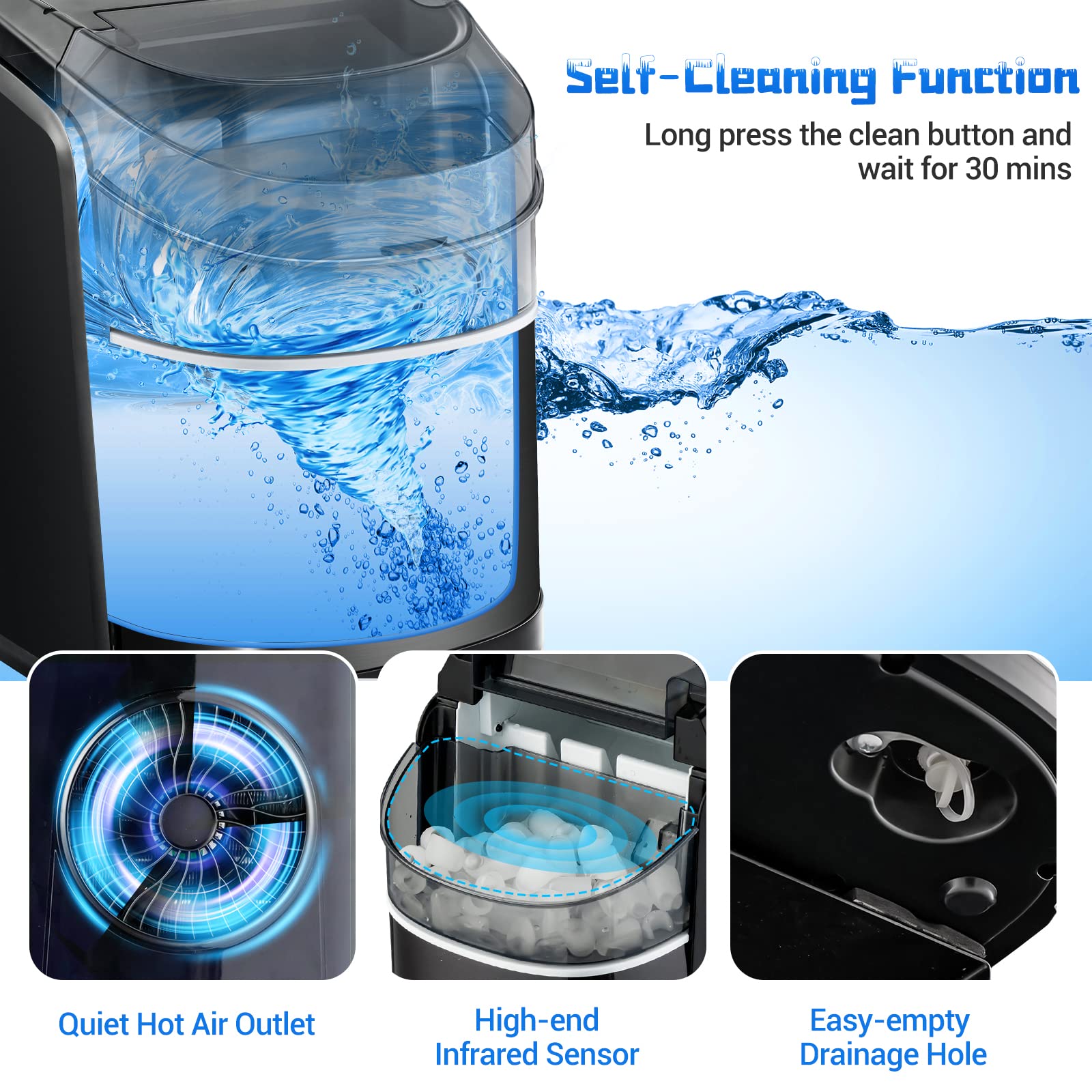 Countertop Ice Maker, 26.5 LBS/24H, 9 Cubes in 6 Mins, S/L Size, Self-Cleaning Function