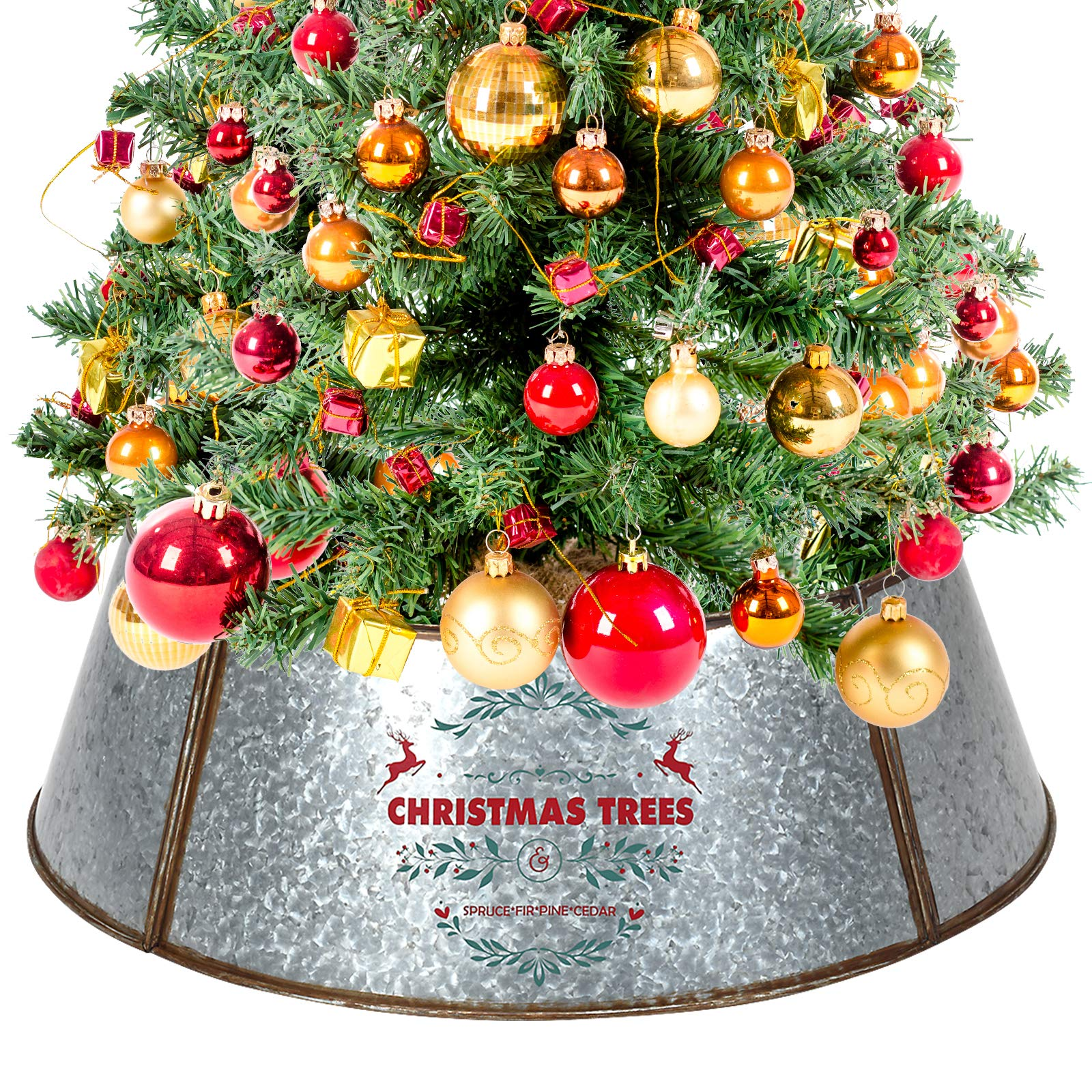 - Selected Material: Made of premium galvanized steel with a silver acid-washing finish, this Christmas tree collar is sturdy and corrosion-resistant for a long service time. With a smooth and waterproof surface, the tree ring is convenient to keep clean with a damp cloth.