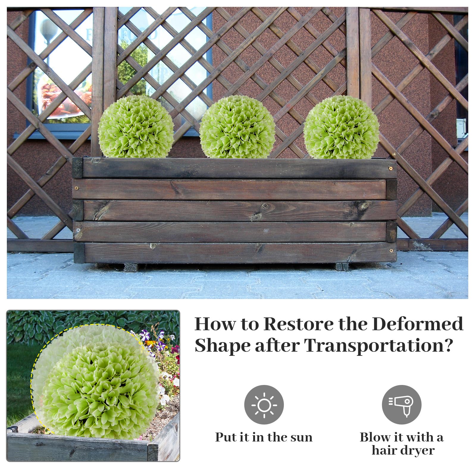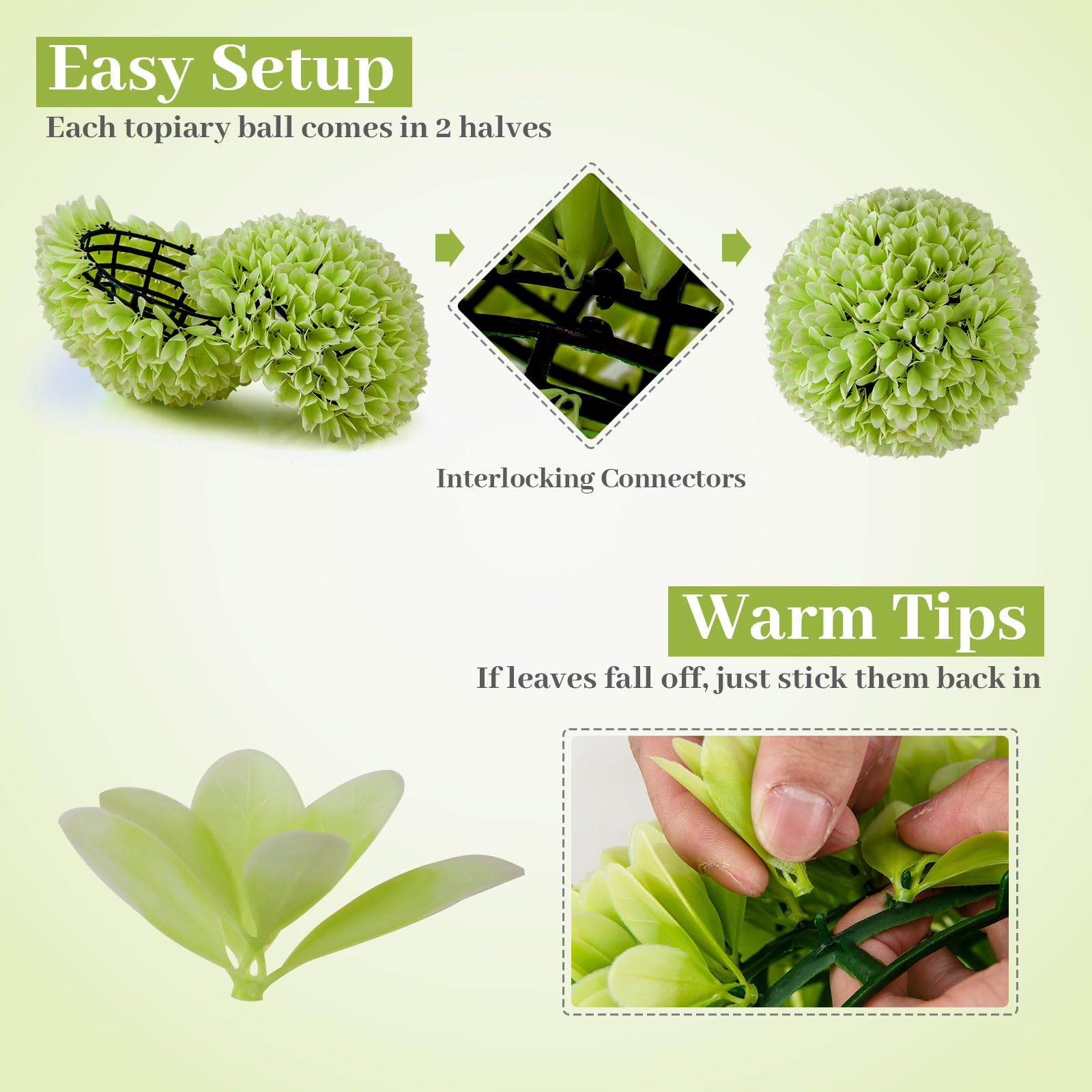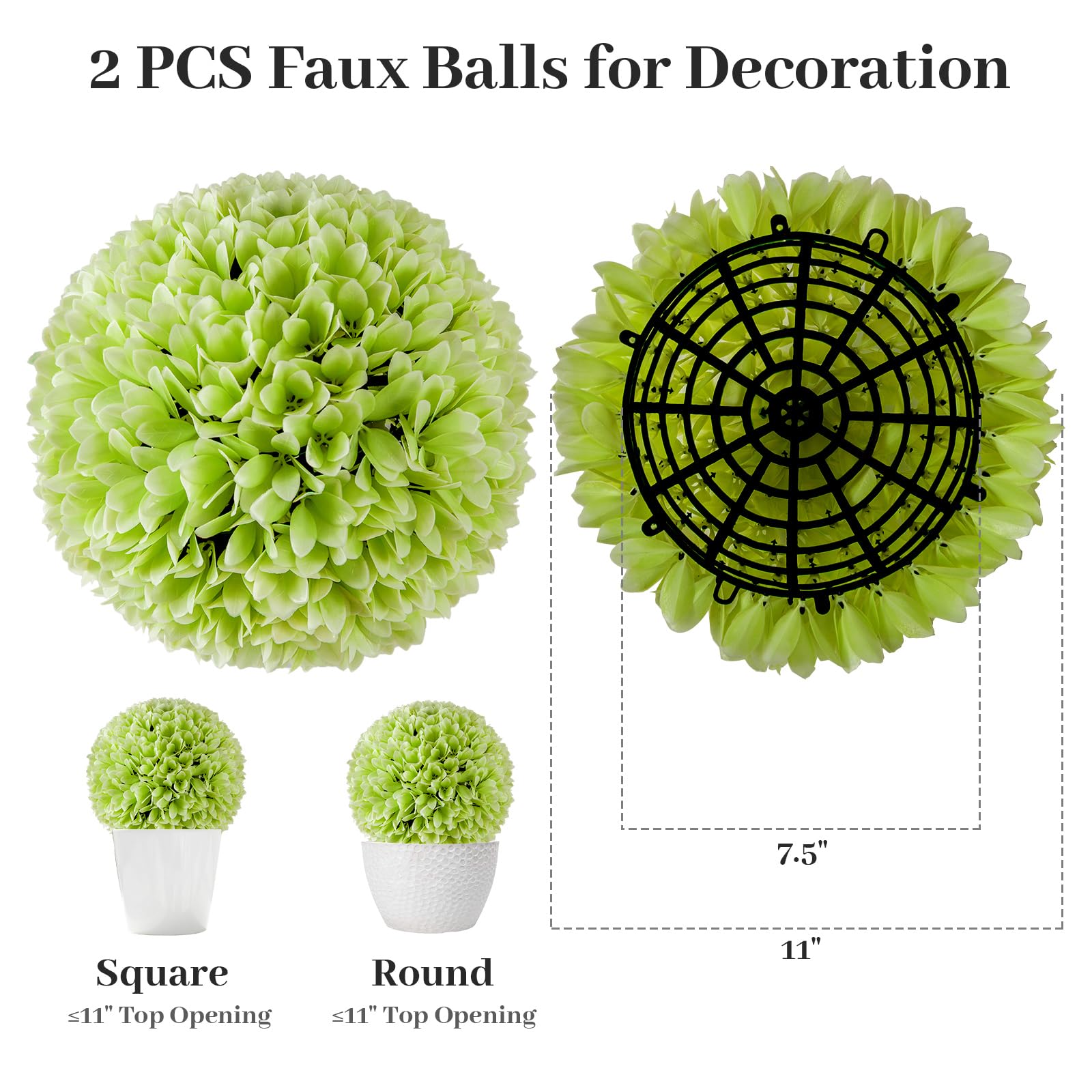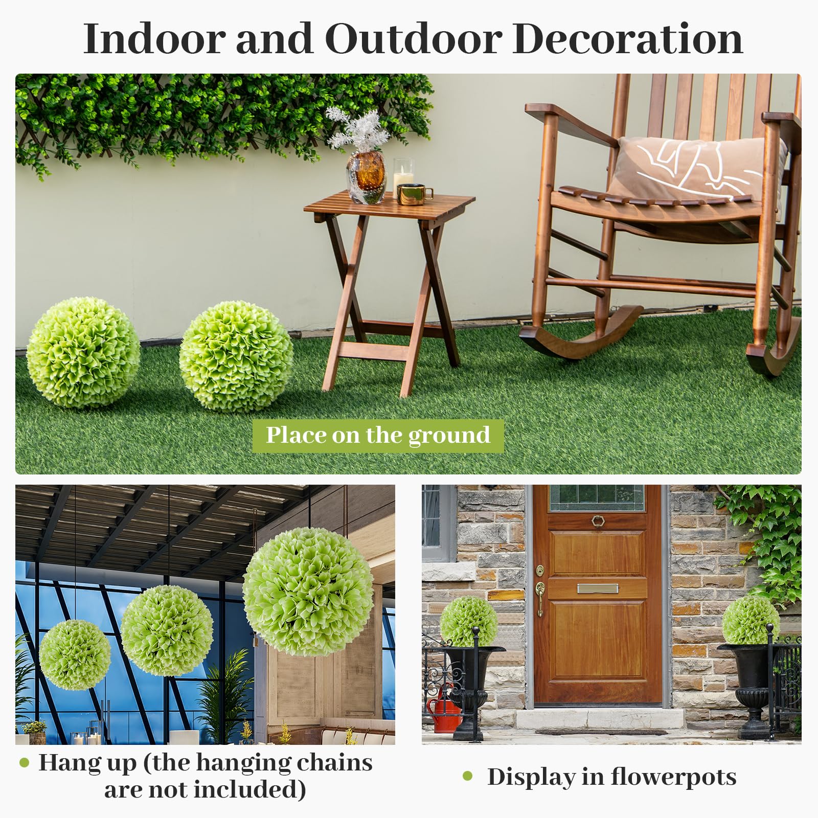 Comes with 2 PCS faux balls for decoration, hang up, place it on the ground or flowerpot