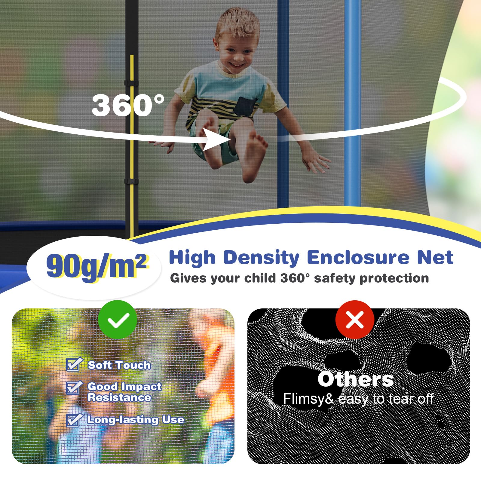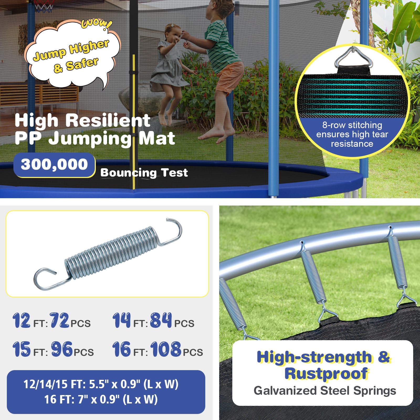 Equipped with highly resilient and UV-resistant PP jumping mat