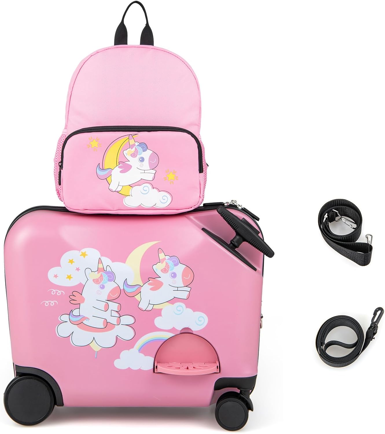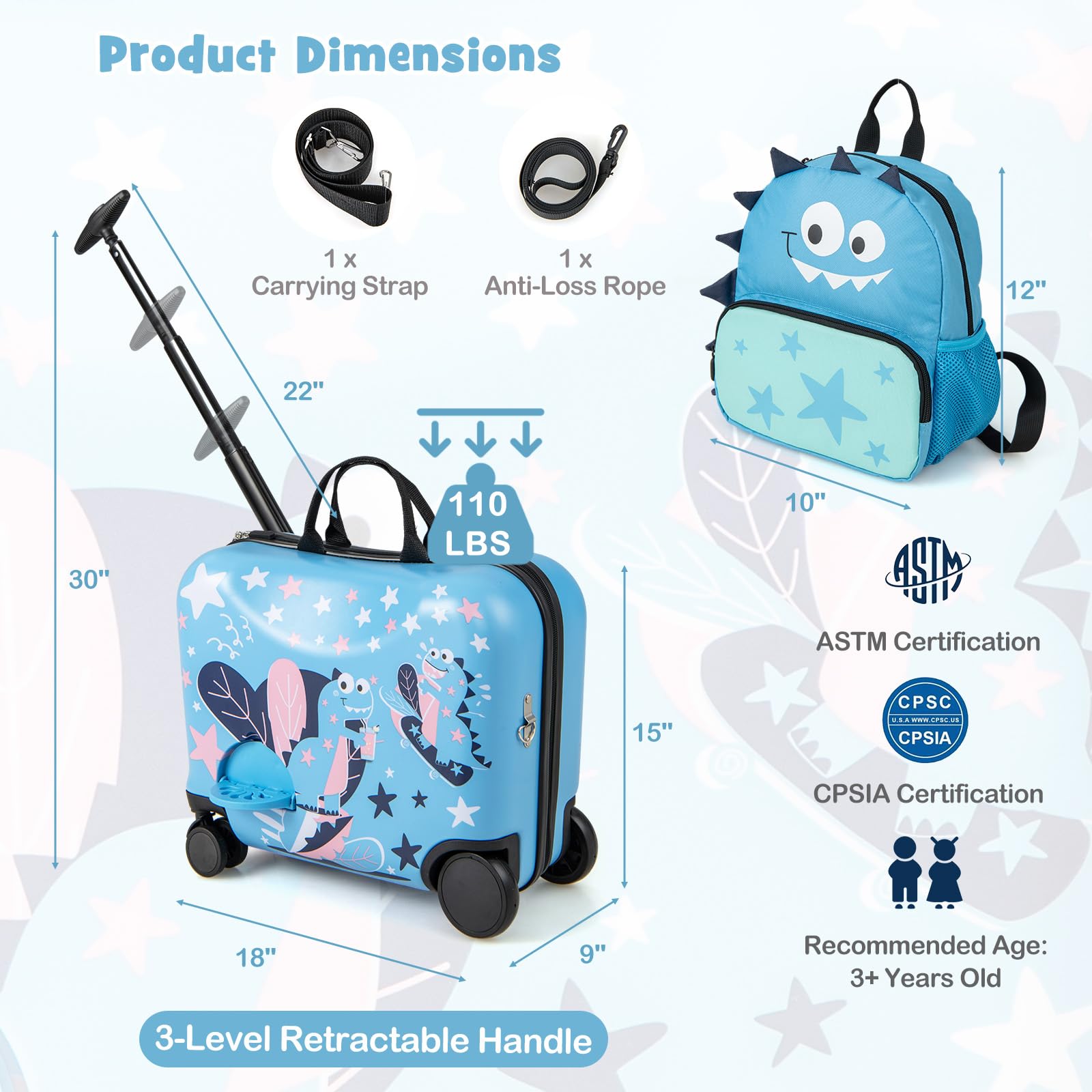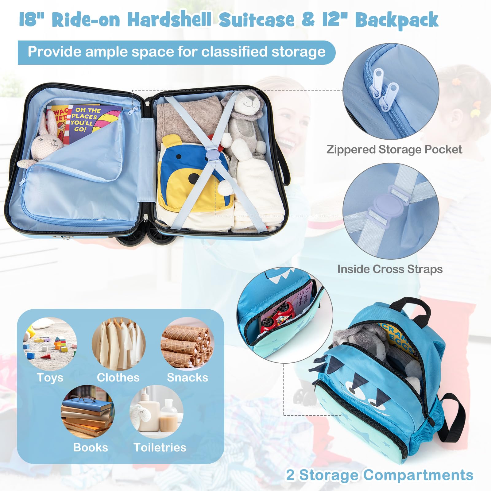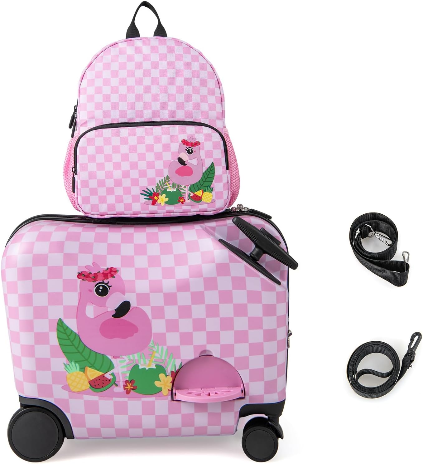 2 PCS kid luggage set: an 18” ride-on suitcase and a 12” backpack