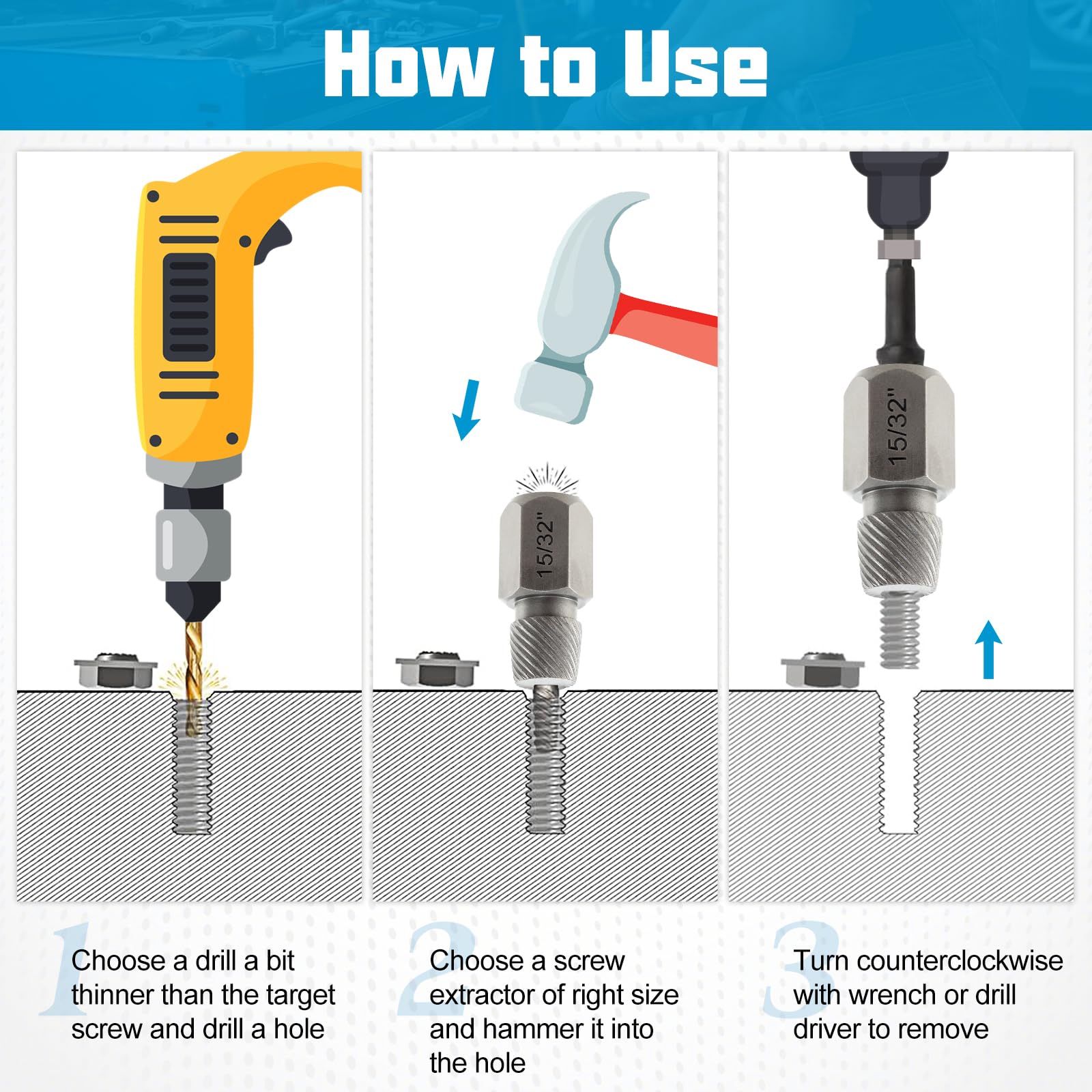 √ A easy to use tool for removing broken bolts and screws of various sizes