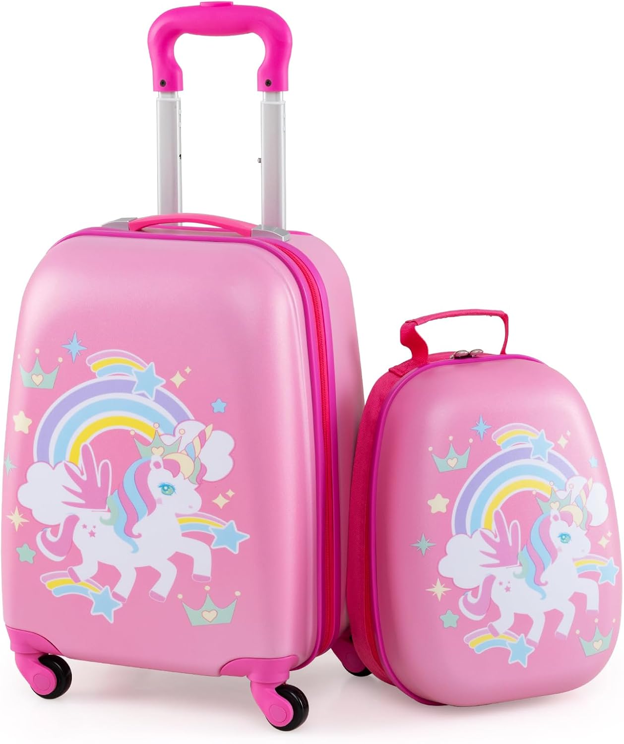 Goplus 2PC Kids Luggage, 12" & 16" Kids Carry On Luggage Set, Lightweight Spinner Suitcases for Boys and Girls