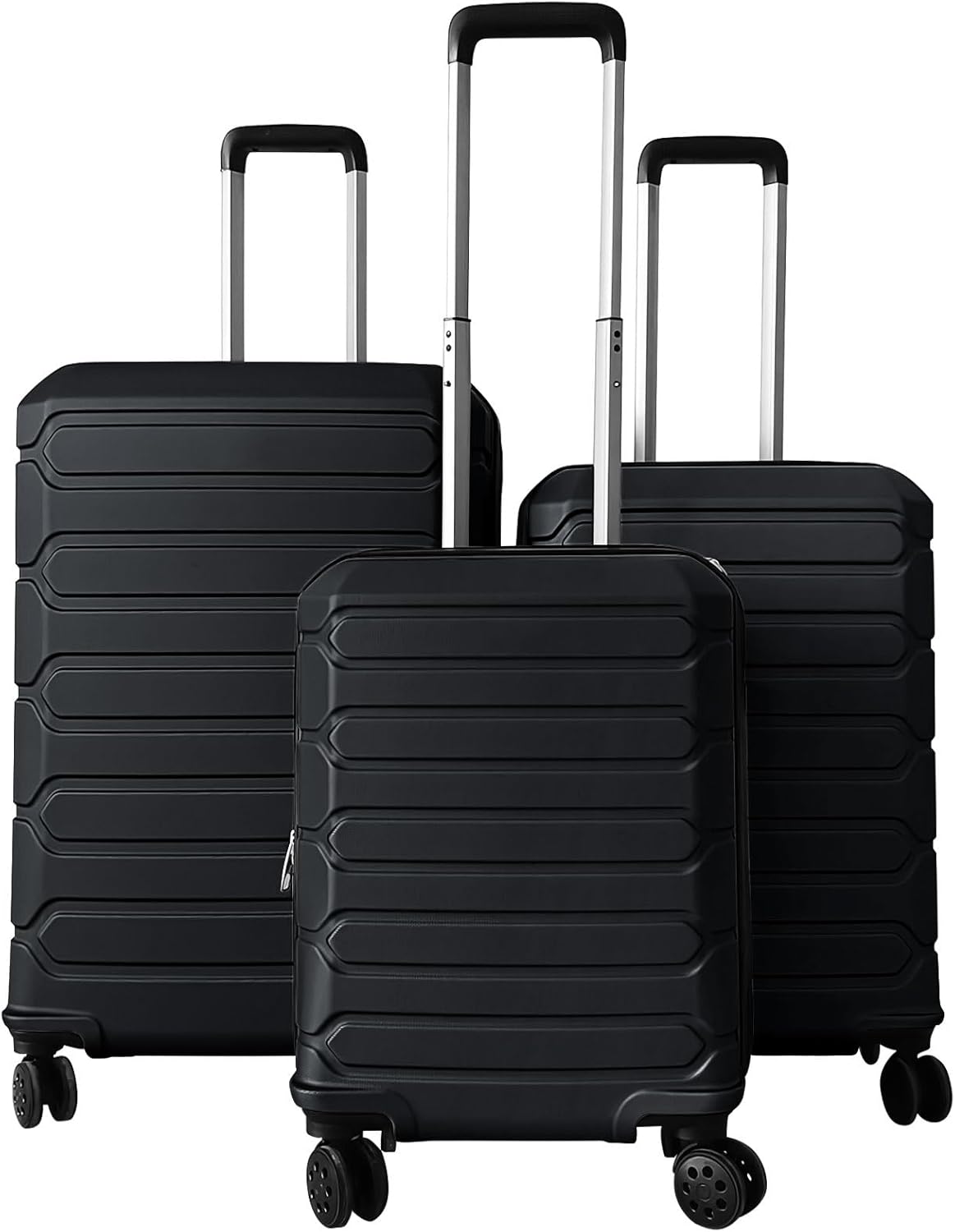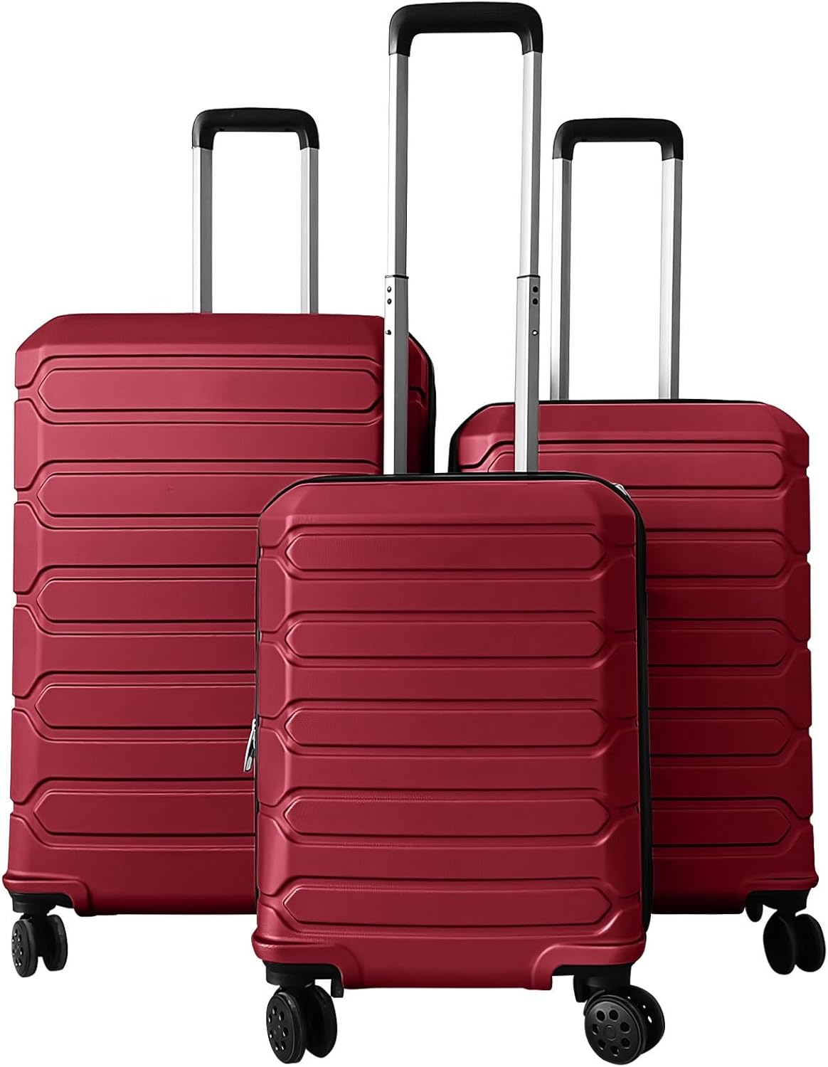 The hardshell suitcase set of 3 includes 20", 24" and 28" suitcases, catering to everything from weekend getaways to extended trips. The interior features smart organization, including an X-shaped securing strap and a convenient mesh divider, so your items stay neatly in place throughout your journey. Effortless mobility is assured thanks to smooth-rolling 360° double spinner wheels and a handle. Additionally, convenient carry handles, smooth zippers, and a secure 3-digit lock deliver both comfort and security as you move from destination to destination.