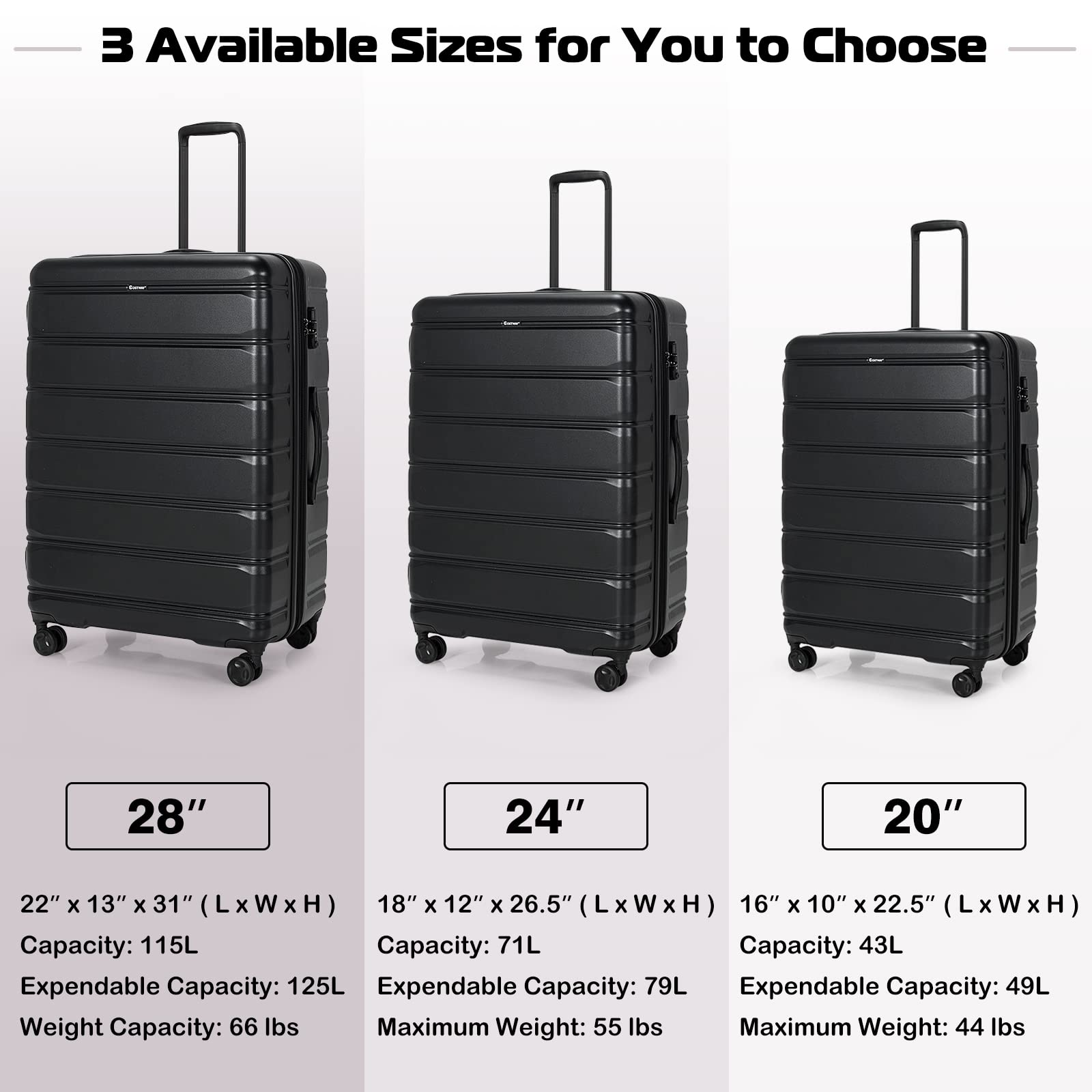 Capacity of 20'' 24'' 28'' Suitcase: 43L, 71L, 115L