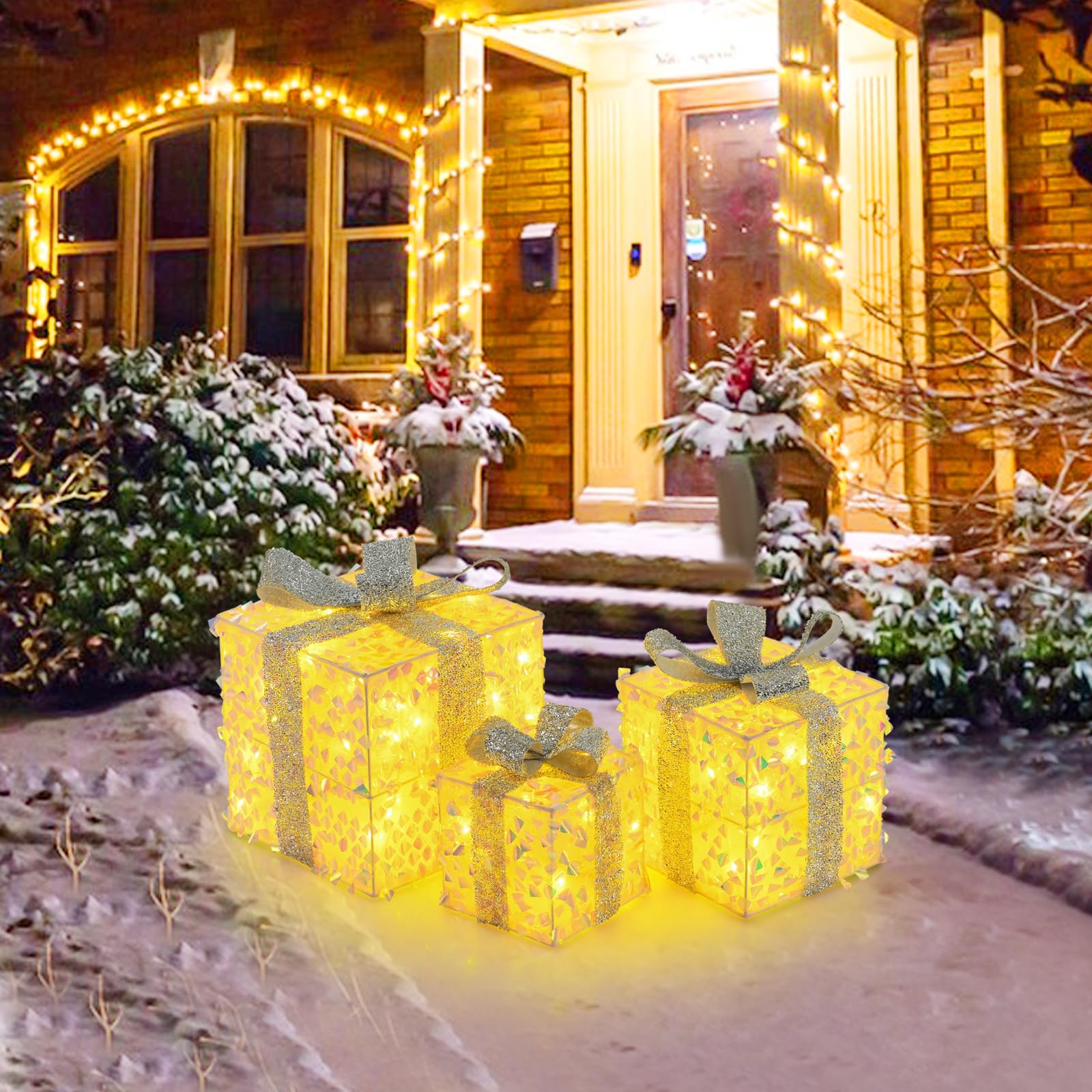 Bring the festive spirit to life with our set of 3 Christmas lighted gift boxes!