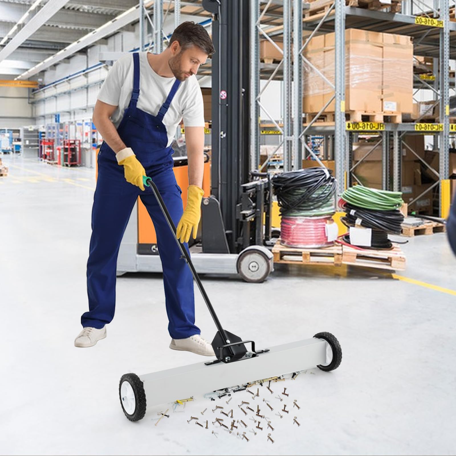 - 【Powerful Magnetic Sweeper】The magnetic sweeper boasts a 36-inch wide working surface that is capable of handling up to 50 lbs of ferrous materials. It greatly saves time and efforts on heavy-duty clean-ups in workshops, construction sites, or garages.
