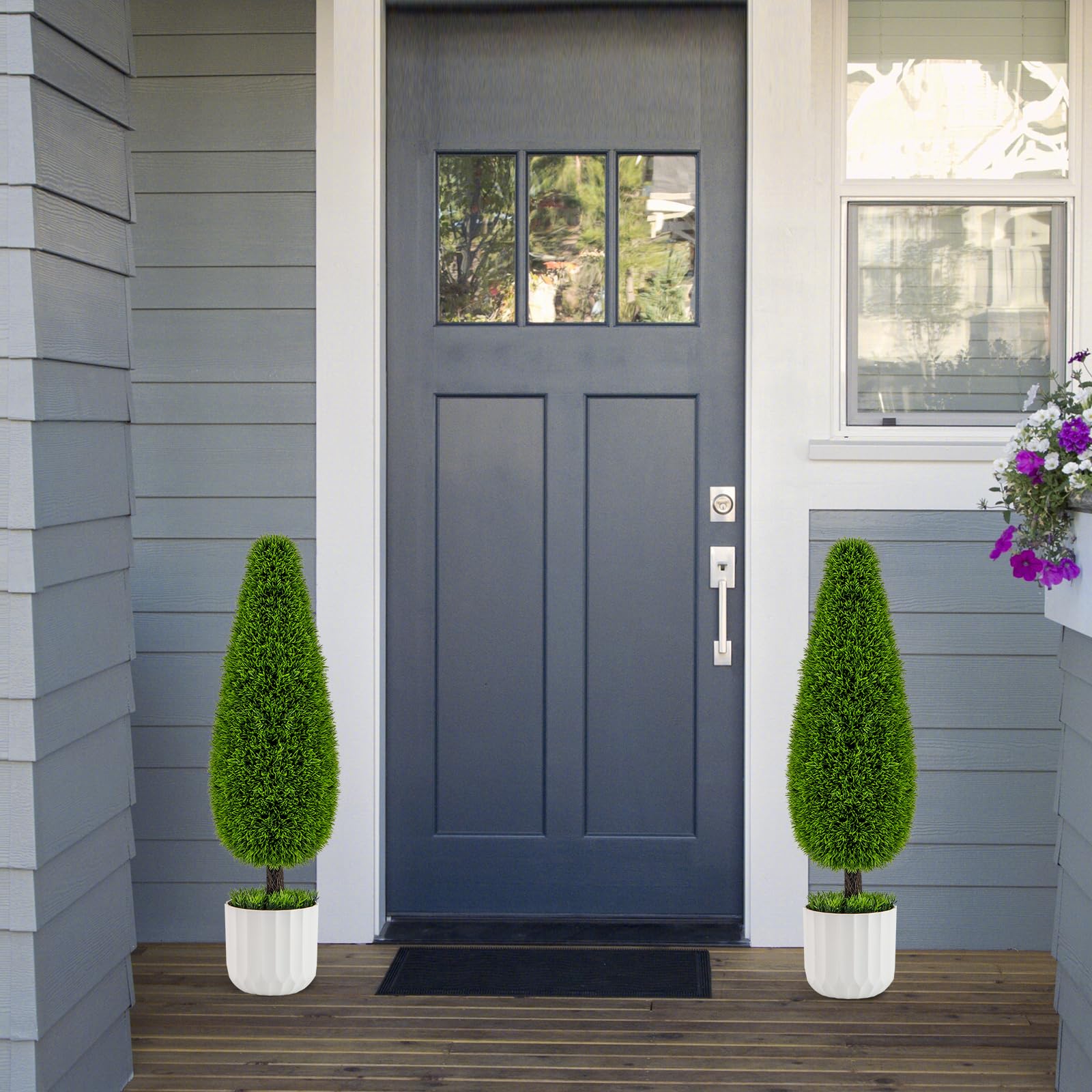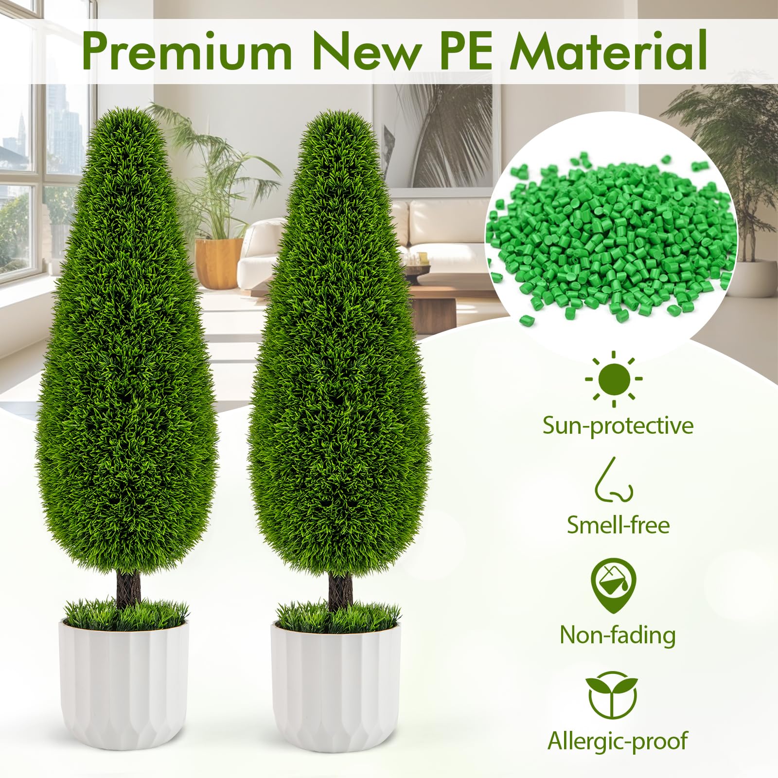 - Premium New PE Material: Crafted from sun-proof PE material, the 2-pack faux potted cypress bushes are suitable for outdoor use. Additionally, the selected material is smell-free and allergic-proof, making it a safe indoor decoration for households with kids and pets.