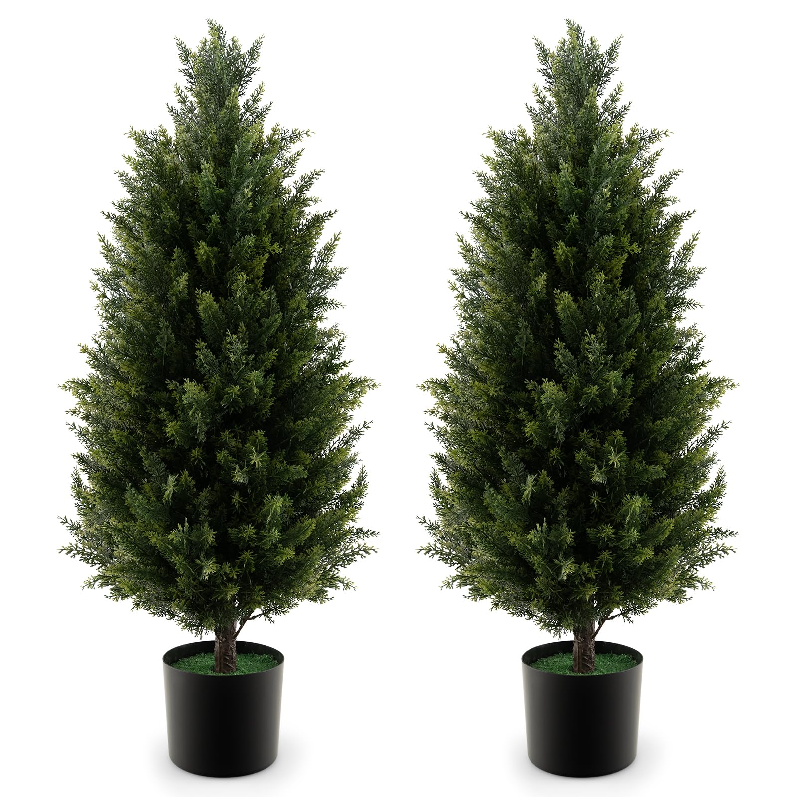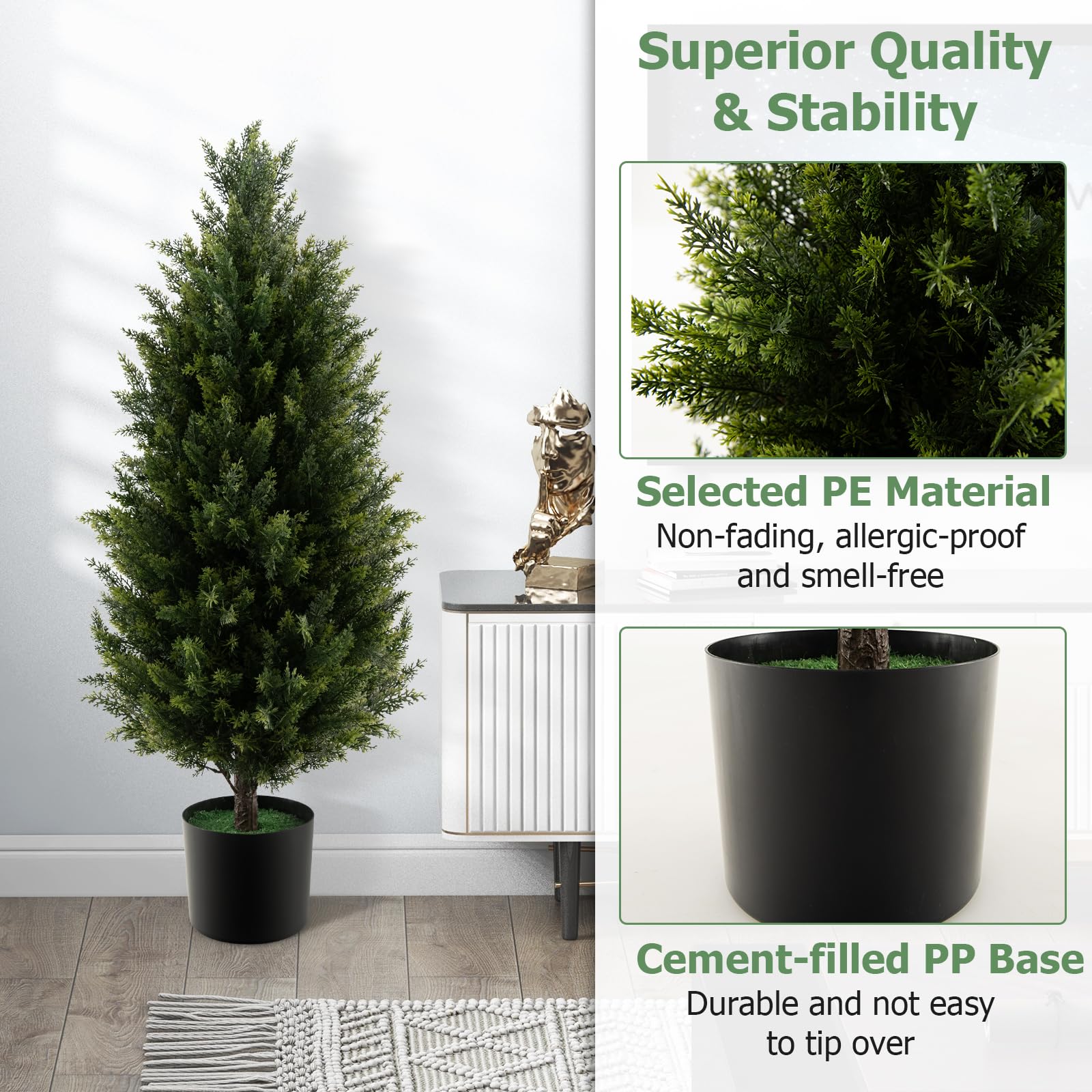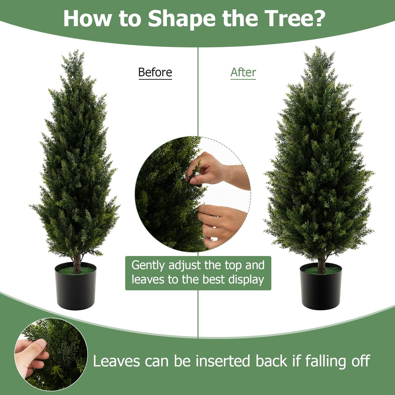 Elevate your space with our exceptional artificial cypress tree.Constructed of luxuriant leaves, simulated trunk and faux moss, the artificial cypress tree features a vivid appearance that will impress you. Our topiary artificial tree is made of high-quality PE, which is odorless and non-allergenic. It can support long-tern display, allowing for a wide range of application, such as bedroom, living room, office, porch and other scenes. And the flower pot is weighed by cement for higher stability. In addition, the realistic fake cypress tree does not need to water, fertilize, and do not require sunshine. Thus, it is easy to maintain. And if you have the question about "how to shape the tree?", here is some tips. Before displaying, we recommend that you bend the branch slightly to your preferred shape. With superior quality & stability, our evergreen & easy to maintain faux cedar tree is a perfect decor.