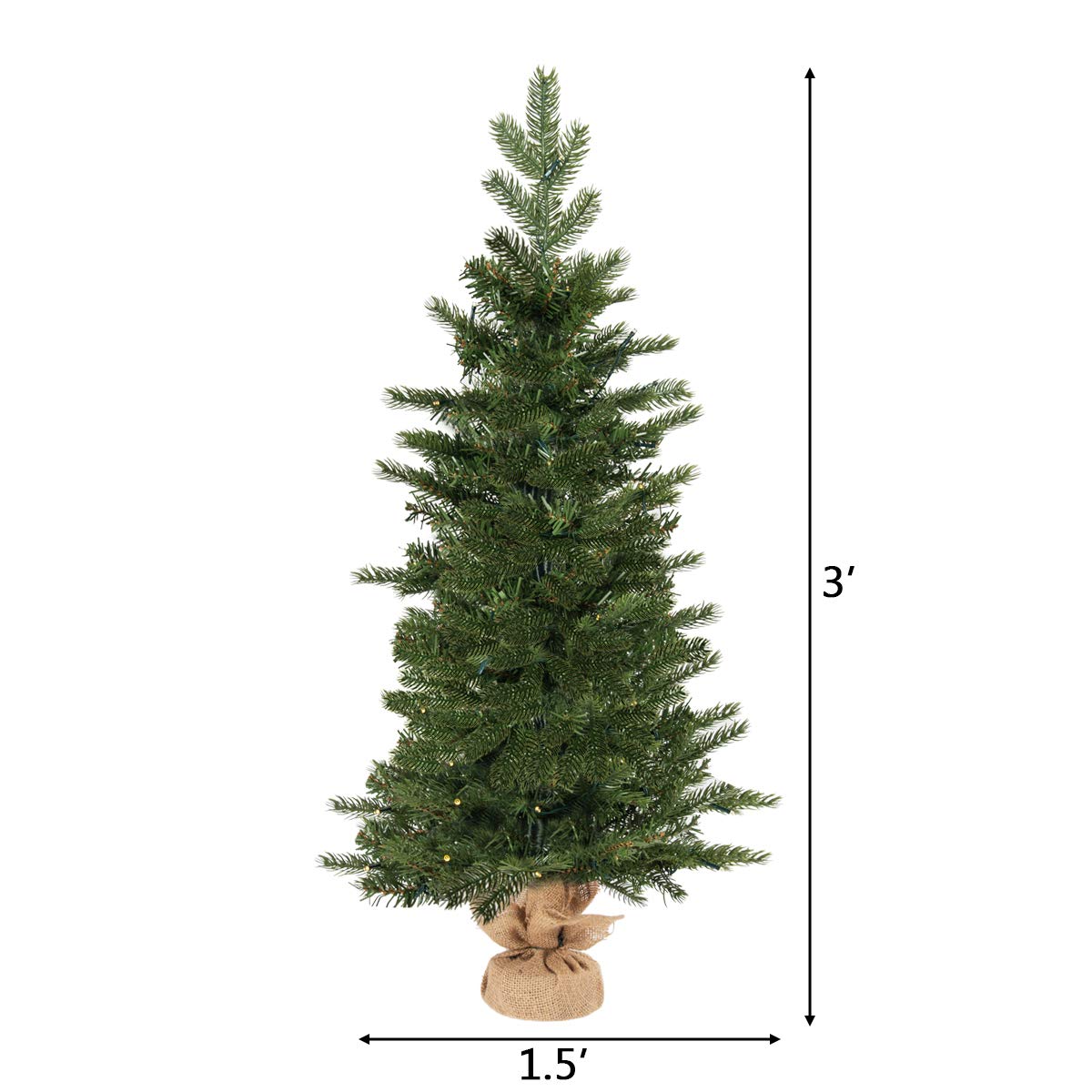 This is our brand new 3ft Christmas tree, which is perfect for adding holiday joy to your home or office. It features simple green color, and 363 branch tips designed to help emulate a real Christmas tree. This Christmas tree is decorated with 50 warm LED Christmas string lights to brighten your space and create a warm and romantic atmosphere in the house. Its timer function allows you to choose to light it on for six hours or keep lit. The classic Christmas tree comes with a cement base for added stability. Enjoy your holiday with this compact design Christmas tree, even when you have little space! Don't hesitate to buy it!