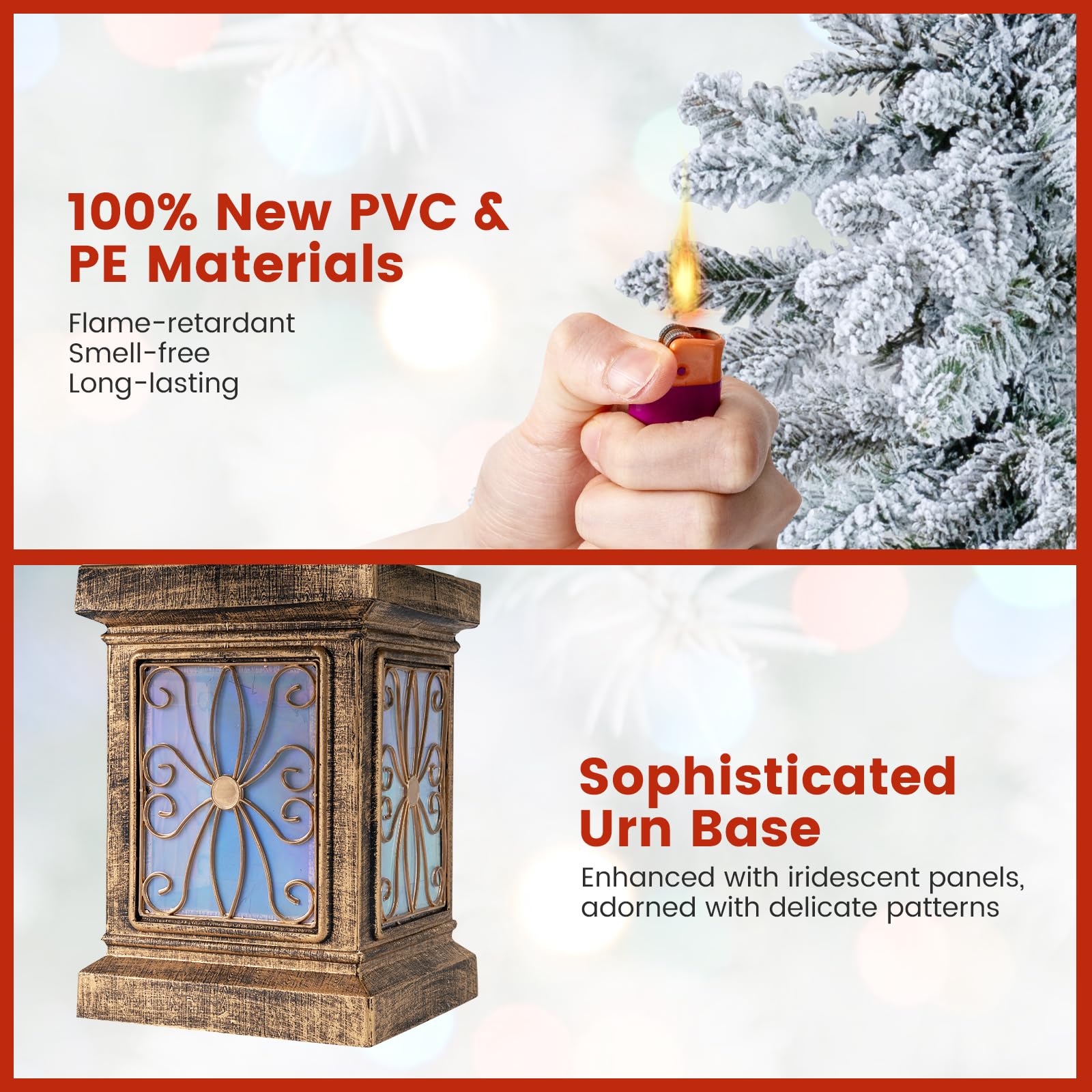 Our potted pre-lit Christmas tree stands at a compact 4 ft, making it a perfect fit for apartments, offices, or tabletops, while its sophisticated urn base with iridescent panels adds a touch of elegance to your festive entrance. Featuring 180 lush branch tips and 100 multicolored LED lights, the artificial Xmas tree creates a magical winter scene with realistic snow-flocked PE and PVC leaves that capture true seasonal beauty. Built using 100% new materials, it is flame-retardant, smell-free, and crafted for safe, long-lasting enjoyment year after year. 8 dynamic lighting modes, 4 adjustable brightness settings, a convenient timer, and dual remote or on-the-tree controller let you easily customize the perfect ambiance for your celebrations.
