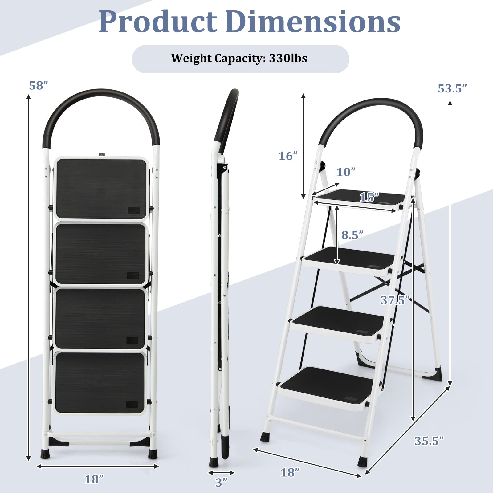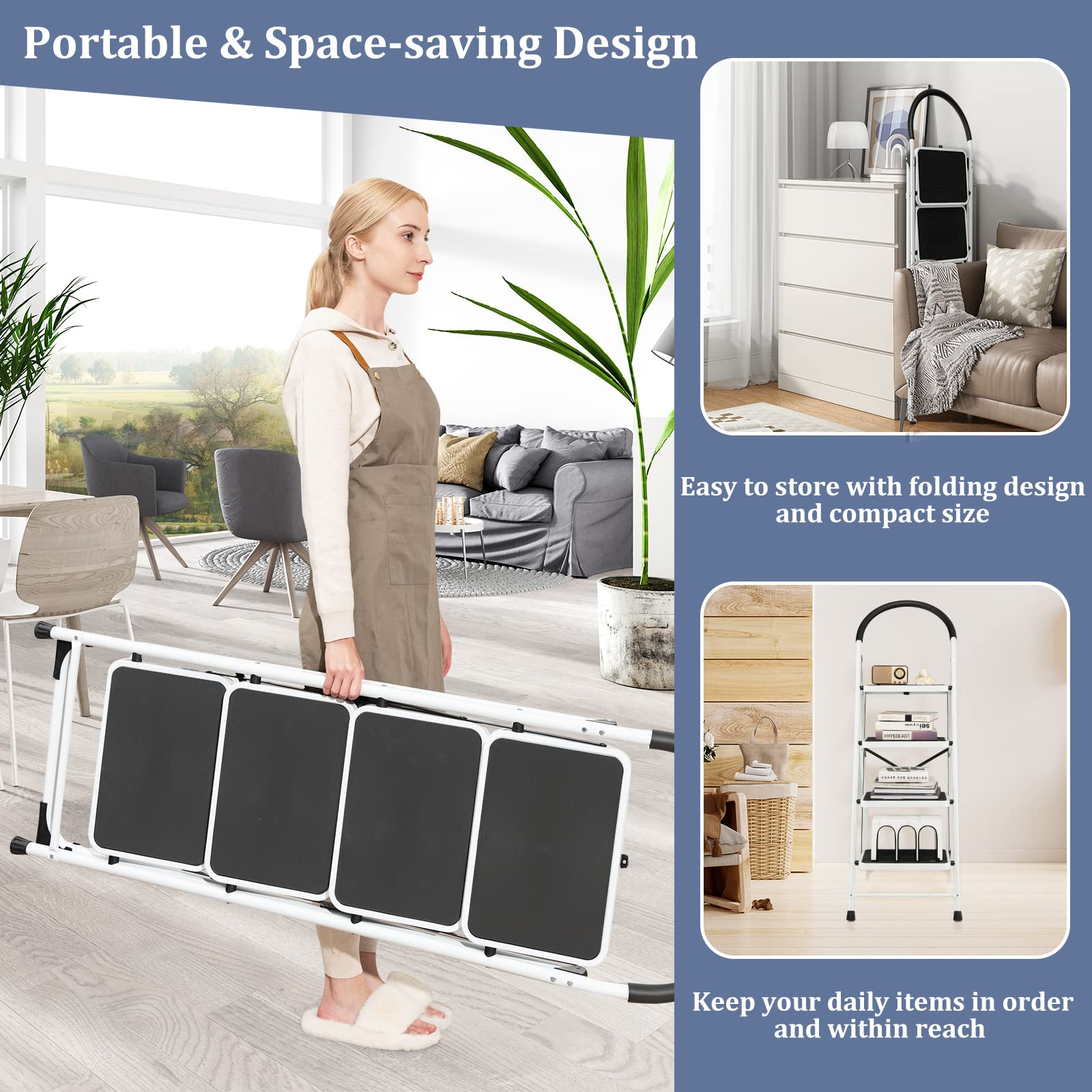 Goplus 4 Step Ladder, Folding Step Stool for Adults with Wide Non-Slip Pedal and Comfort Handgrip for Kitchen Closet Office