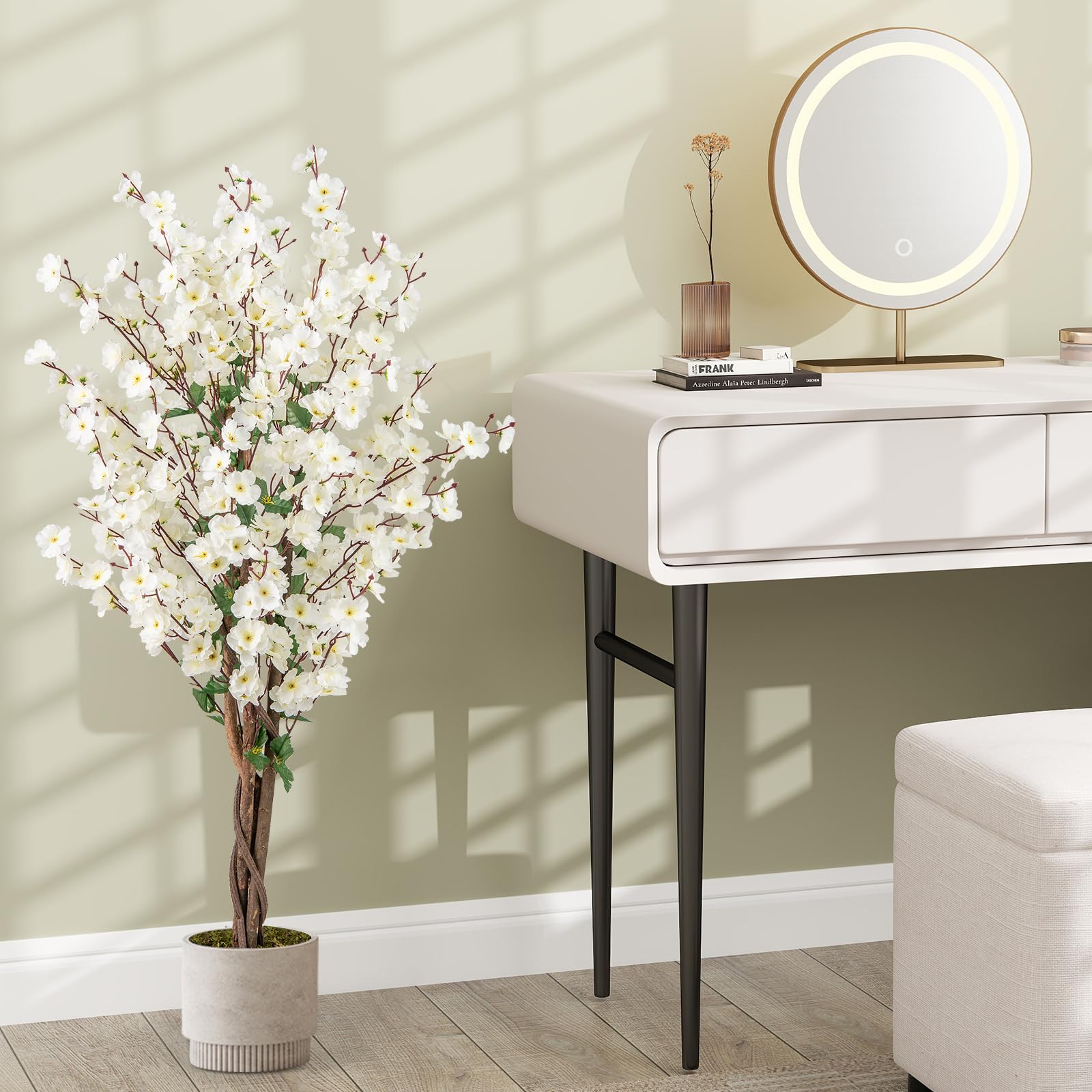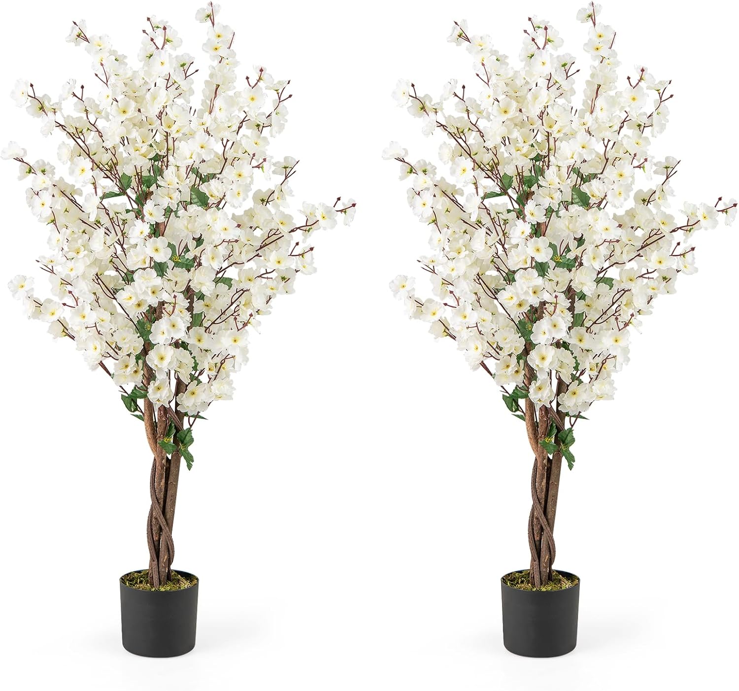 This artificial winter sweet tree is the perfect way to bring the beauty into your home all year round! It features selected fabric flowers that are fade-resistant and tear-resistant, maintaining their realistic textures and vibrant colors. Unlike real plants, this potted plant requires no watering, sunlight, fertilizer, or pruning, making it incredibly low-maintenance. It’s also incredibly easy to set up, simply bend the stems and flare out the leaves to restore their natural shape. If any leaves accidentally drop off, you can easily insert them back into place. With dense white flowers and realistic trunks and moss, it looks incredibly natural. The sturdy cement-filled pot ensures stability, preventing the tree from being easily knocked over.