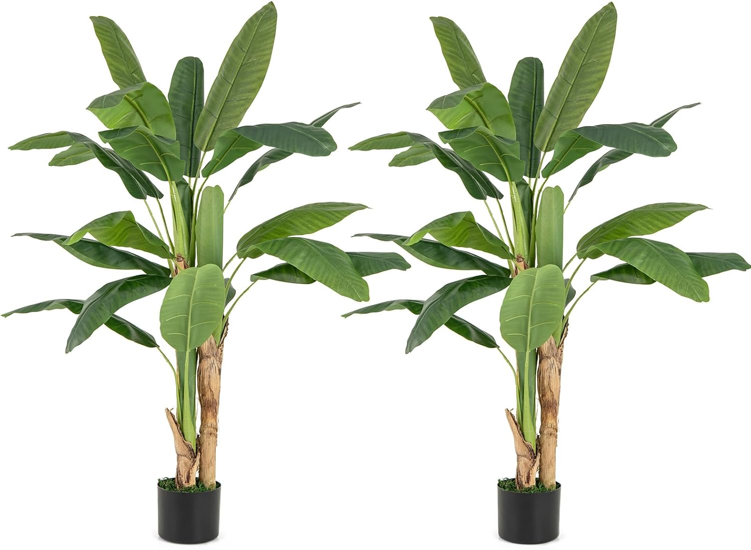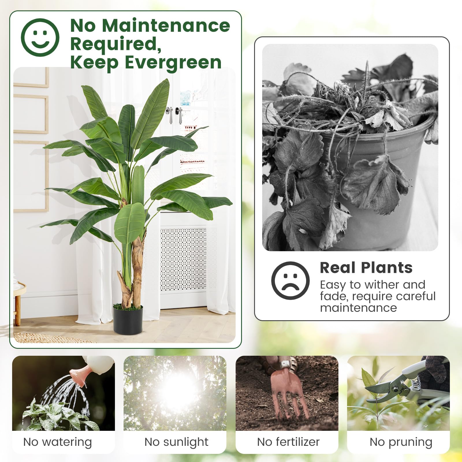 - Vivid and Natural Appearance: This 63” tall artificial plant boasts 18 large lifelike leaves with vibrant hues and realistic textures, which are designed to replicate the beauty of banana leaves. Additionally, it features simulated trunks and realistic moss, making the tree more natural.