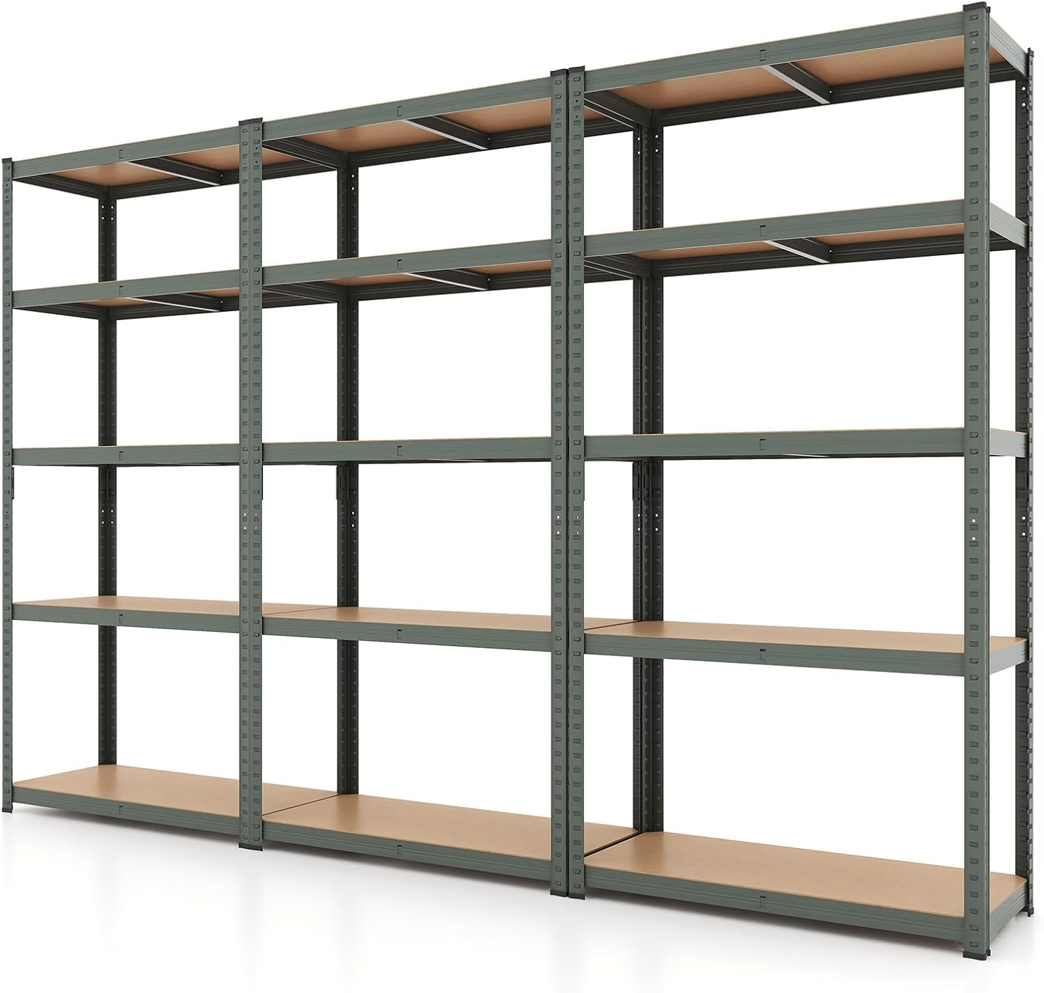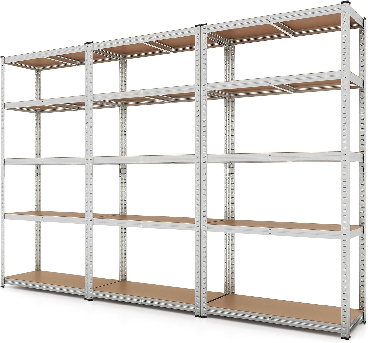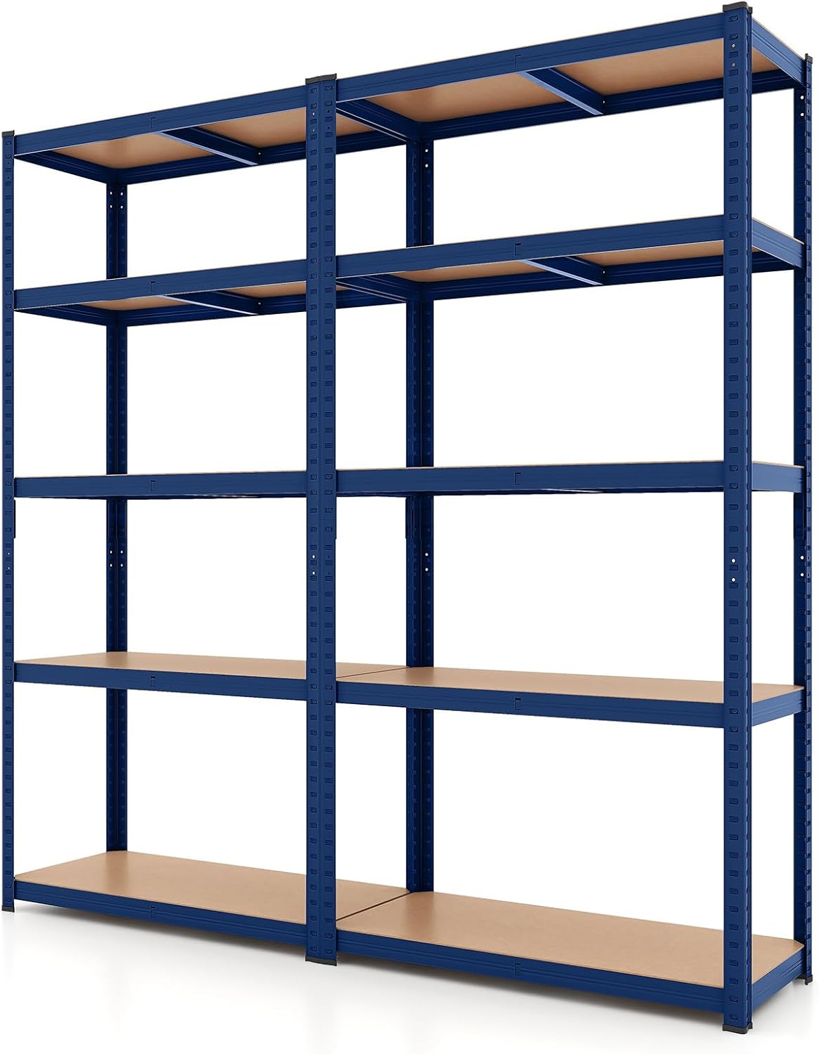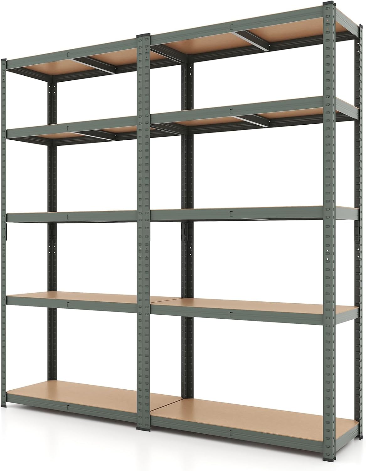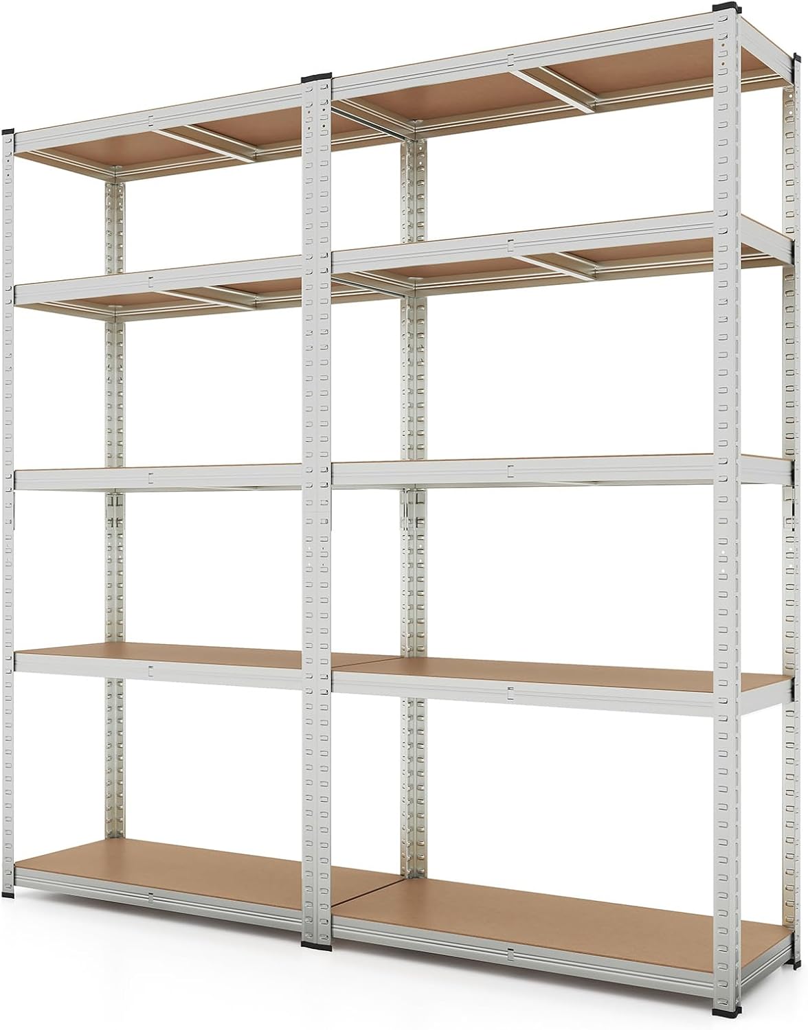 The metal shelving can be transformed from a towering 5-tier shelf to 2 separate units to optimize your space. Supported by galvanized metal frame, the whole shelf can load up to 2000 lbs. Moreover, this unit adapts to your organizational needs with height-adjustable tiers. And the 2 anti-toppling devices make the storage shelf stand with high stability. With high functionality and flexibility, this 5-tier shelving unit is ideal for storing items in your garage, warehouse or kitchen. Elevate your storage solutions with this robust and reliable shelving unit.