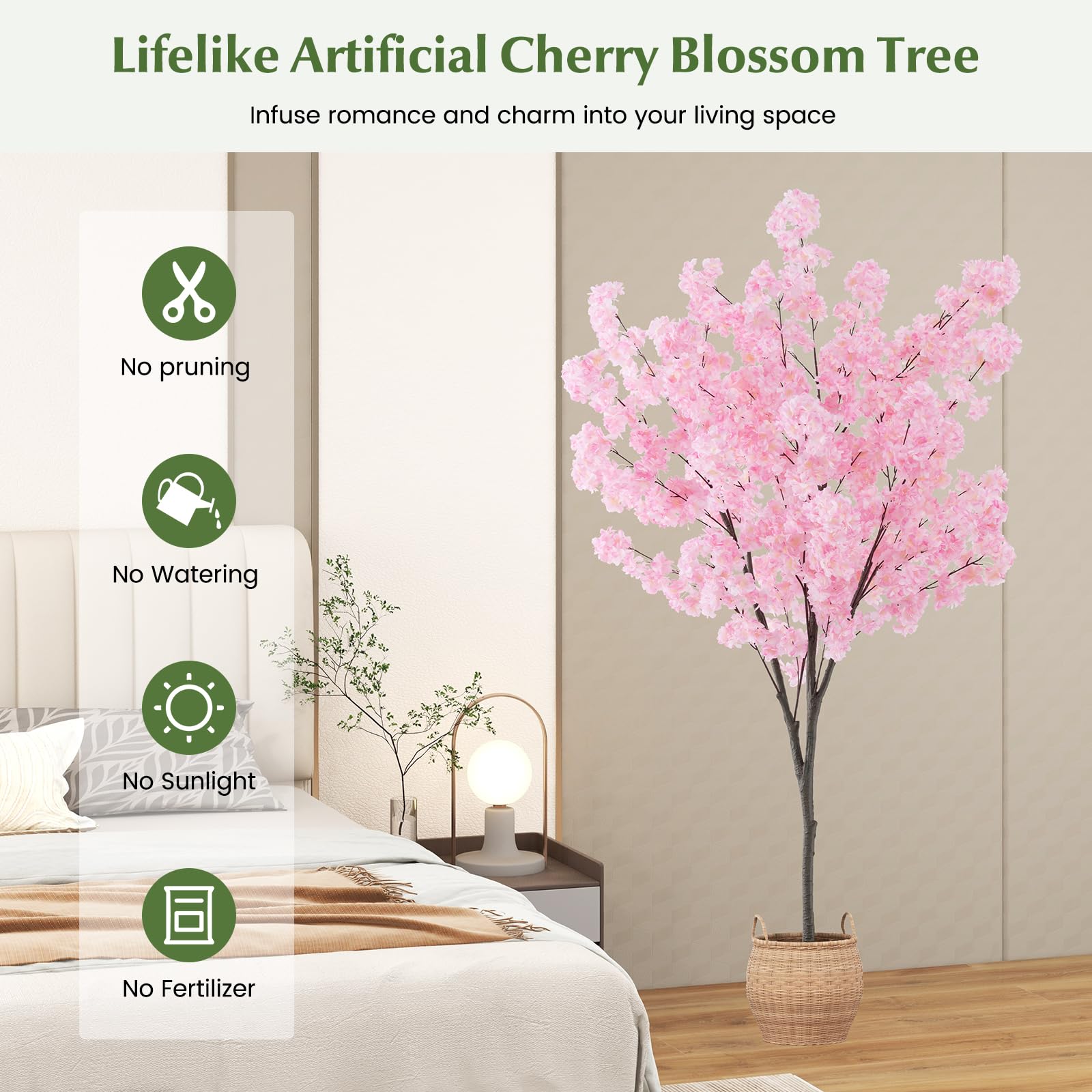 - Gorgeous & Vivid Appearance - This 6.5 ft tall artificial tree is adorned with 1170 delicate pink cherry blossoms, which could infuse romance and charm into your living space. Additionally, it adopts simulated PE trunks and realistic moss, which could further enhance the natural look.