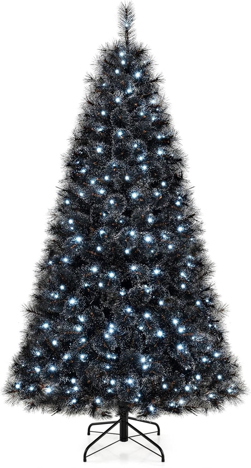 - Chic and Stylish Appearance: This 6/7/8 ft artificial Christmas tree features 362/572/860 lush branch tips, which showcase 2 types of leaves - frosted pine needles and PVC leaves, making the tree full-bodied and vivid. Besides, the foliage is in elegant black color, creating a sophisticated and striking look.