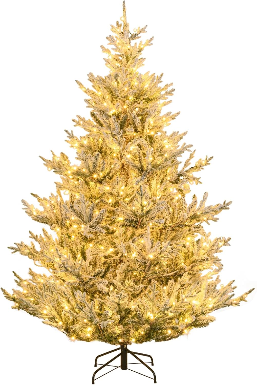 With 762/1074/1470 branch tips densely coated in thick snow flocking, this tree creates a rich, realistic winter wonderland scene that instantly transforms any space. Enhanced by 340/450/580 warm white LED lights, it casts a soft, inviting glow—perfect for holiday gatherings, festive celebrations, or quiet nights by the fireplace.