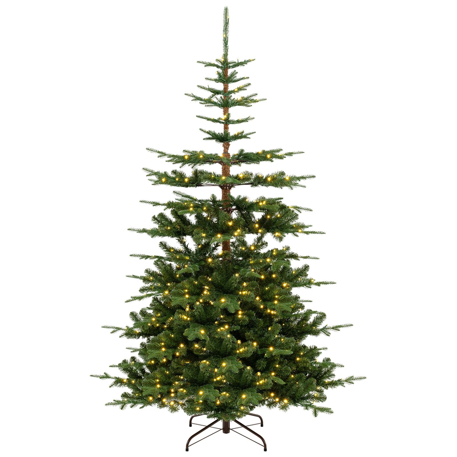 Our 7 ft pre-lit artificial Christmas tree boasts 1303 full-bodied branch tips, including a combination of verdant PVC leaves and soft PE leaves, along with a textured PVC trunk, ensuring a vivid and full-bodied appearance that breathes life into any room. Moreover, it could illuminate your space with ease using the 500 warm white LED lights pre-strung on the tree, creating a cozy and inviting atmosphere for festive celebrations. Setting up this tree is a breeze with its convenient 3-section structure and flexible hinges that allow branches to automatically spread out, complete with a pre-assembled screw on the foldable base for effortless fixation. Additionally, our tree is crafted from 100% new PVC and PE leaves, supported by a robust crossed metal base, ensuring safe and long-lasting use. This charming artificial fir tree is perfectly suited for various occasions, from enhancing your living room decor during the holidays to serving as a stunning backdrop for hotel lobbies, large halls, or school events.
