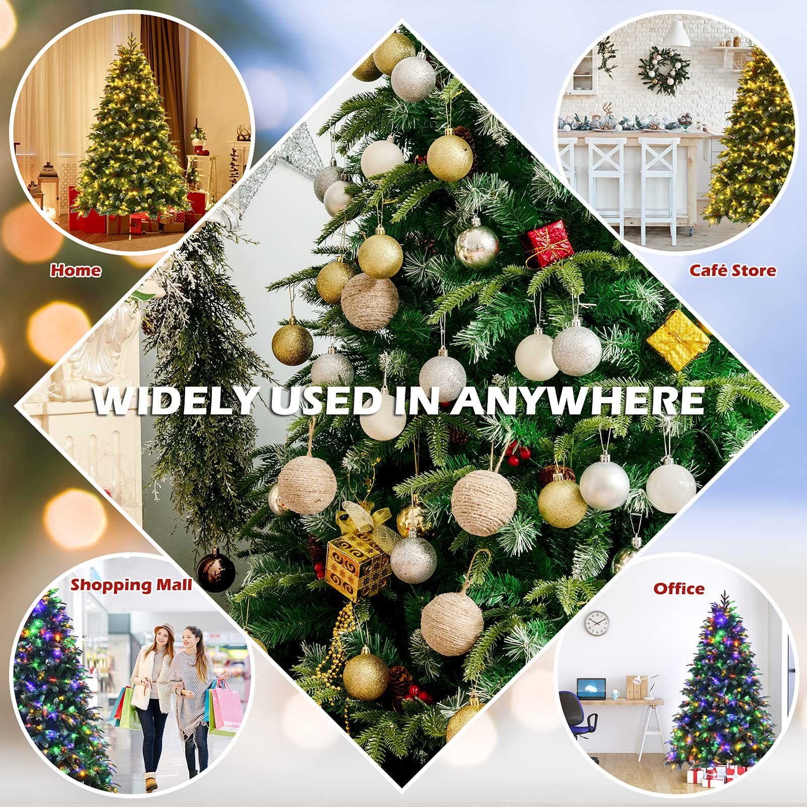 Our pre-lit Christmas tree will be an ideal decoration during the Christmas season. 1315 PVC and PE branch tips create a lush and leafy appearance. The real pine cones and polished red berries are hidden among the verdant leaves. And the snowy design on the tips enhances the home with a touch of a winter scene. Besides, 450 bright LED lights with 2 changeable colors are evenly distributed on the dense tree, making the home full of a charming vibe. Thanks to the 11 dynamic effects of the lights, you can enjoy the beautiful lighting show at night. And all these ornaments are pre-strung, and you don't need to spend more time. Besides, the branches with a hinged design facilitate fluffing and assembly, which can save you energy. All in all, our life-like hinged Christmas tree is an eye-catching holiday decoration to spread luck on all occasions.