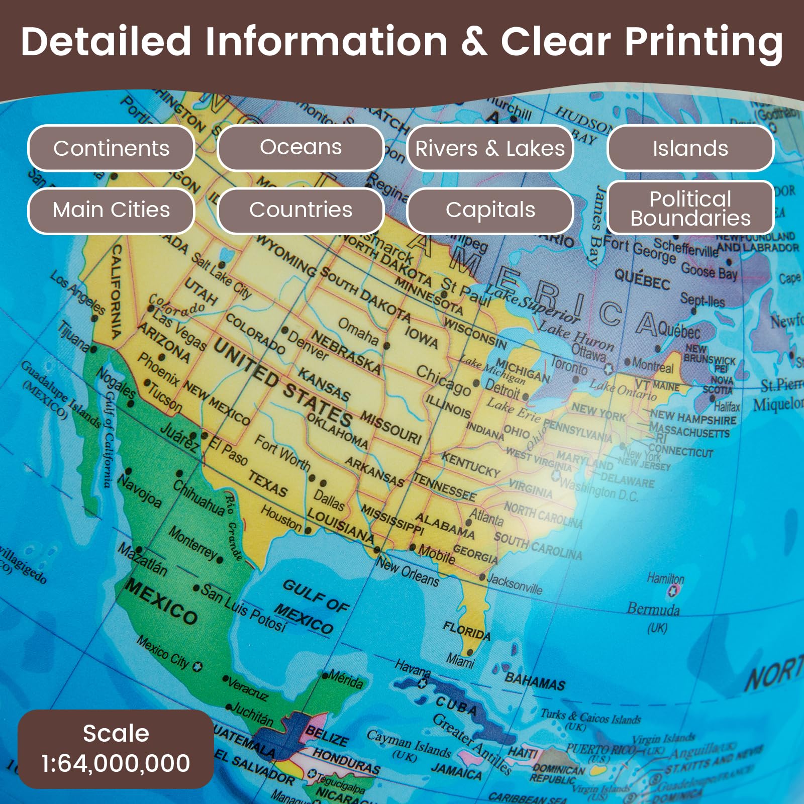 Illuminate your space with the captivating LED Illumination of this 8-inch world globe.
