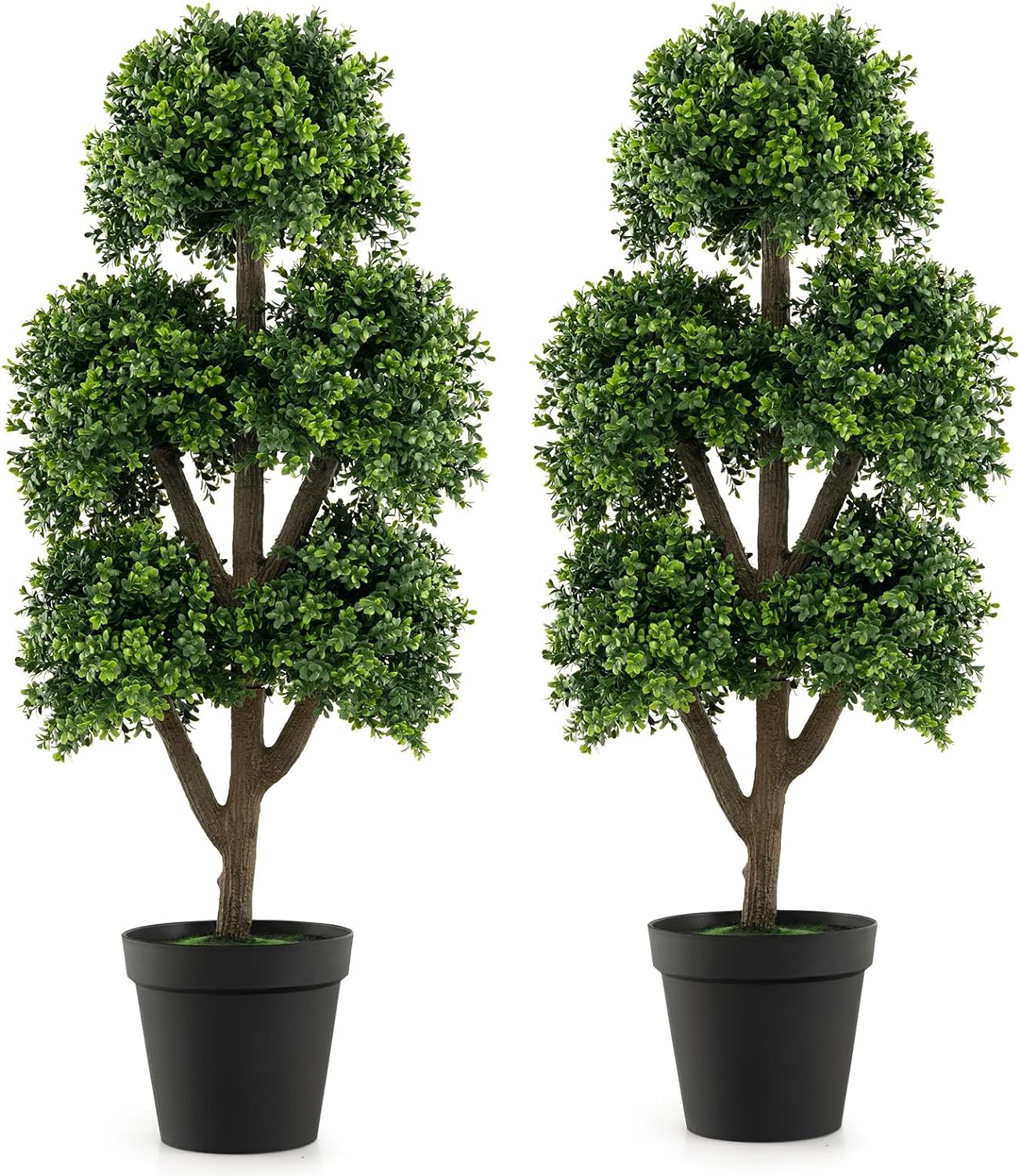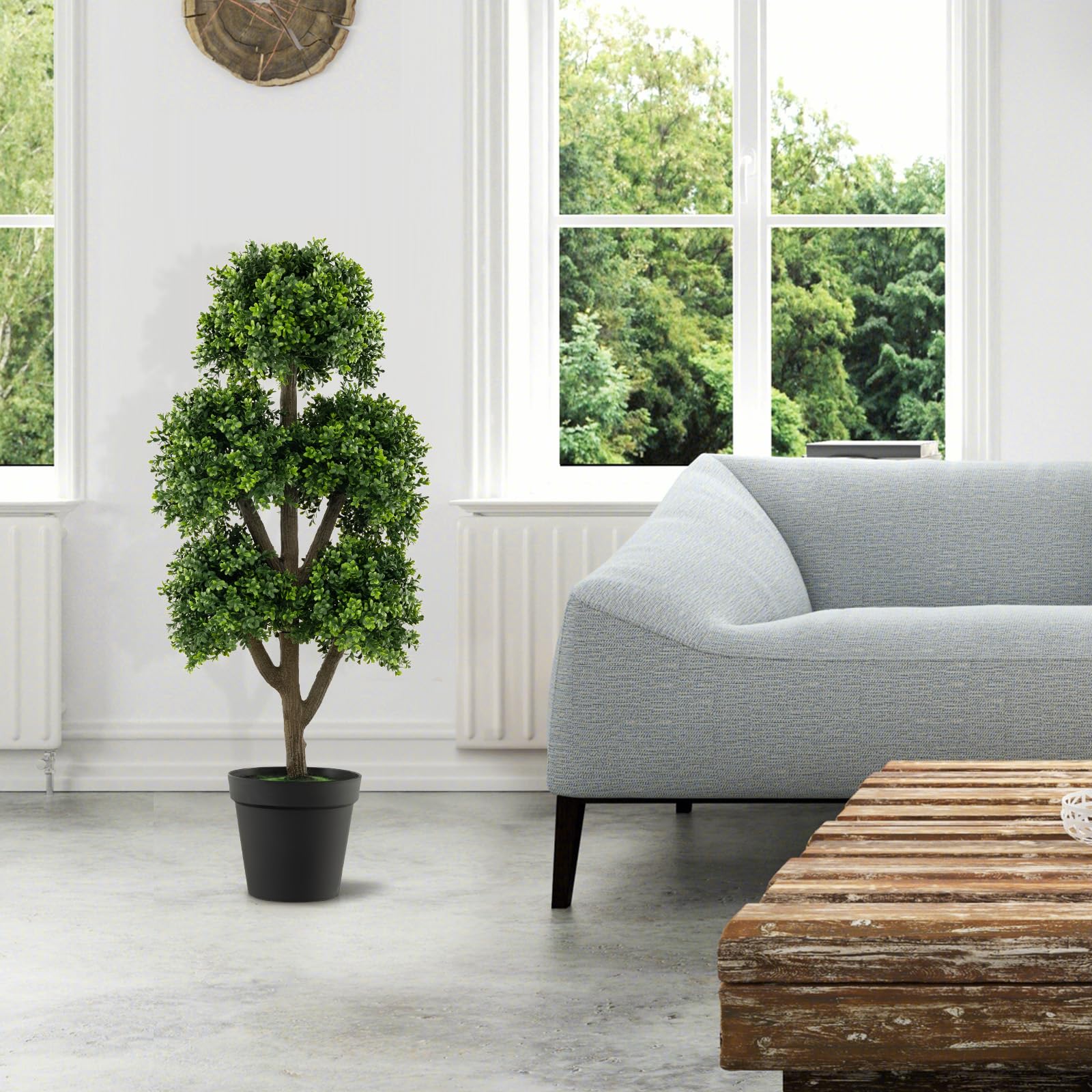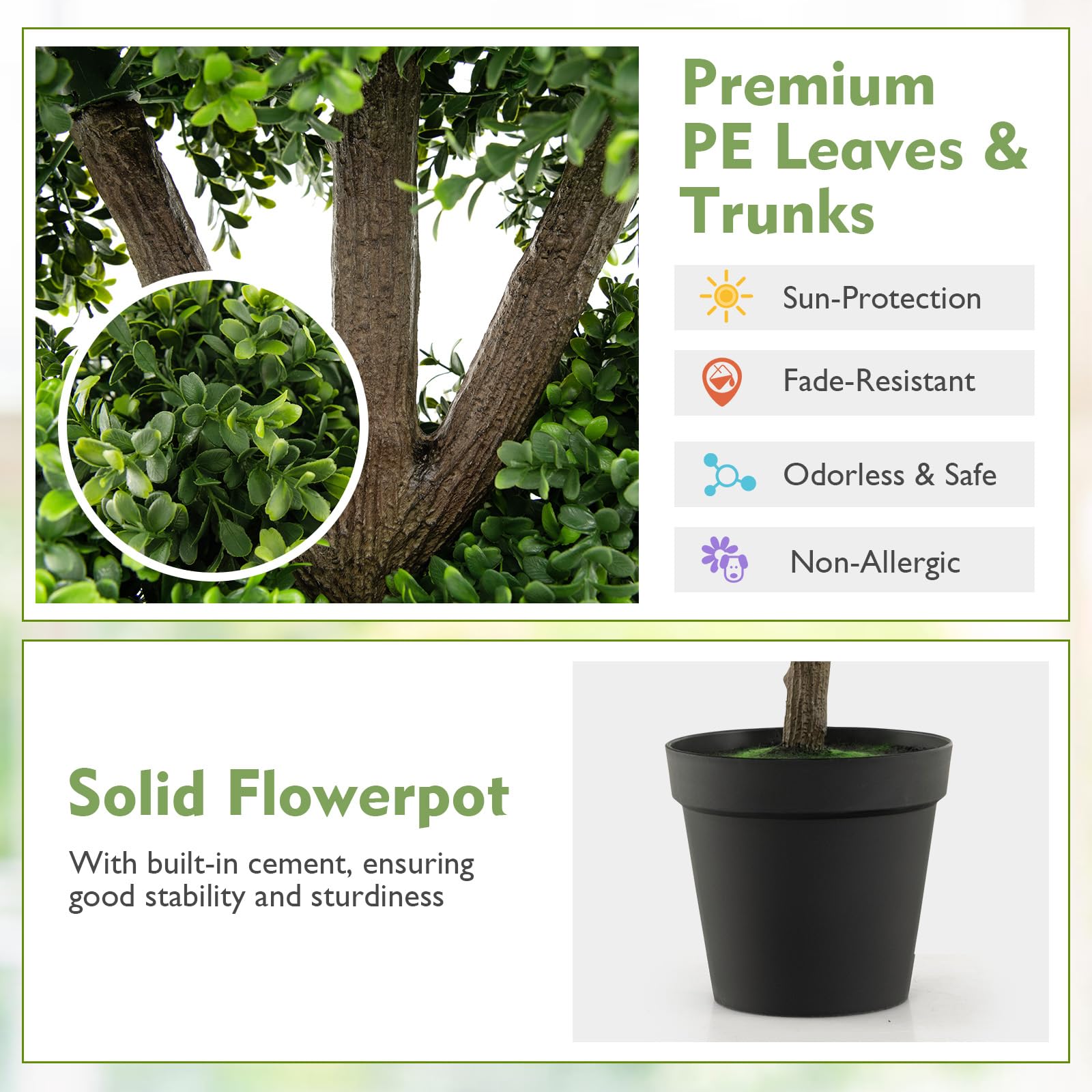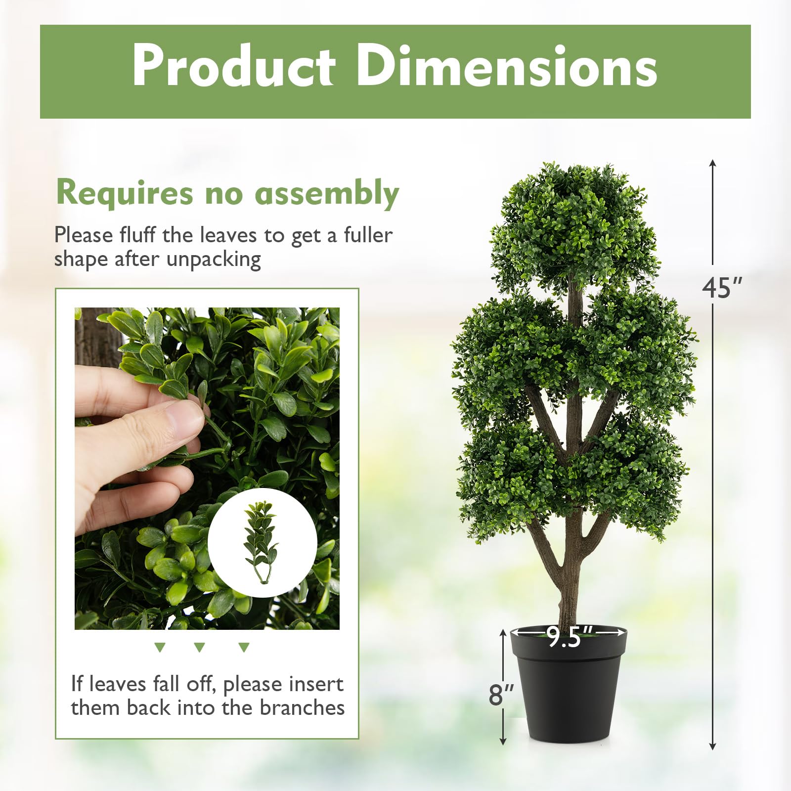 Goplus Artificial Boxwood Topiary Tree, 45” Tall Faux Potted Plants with 5 Ball-Shaped Topiaries, Cement Flowerpot