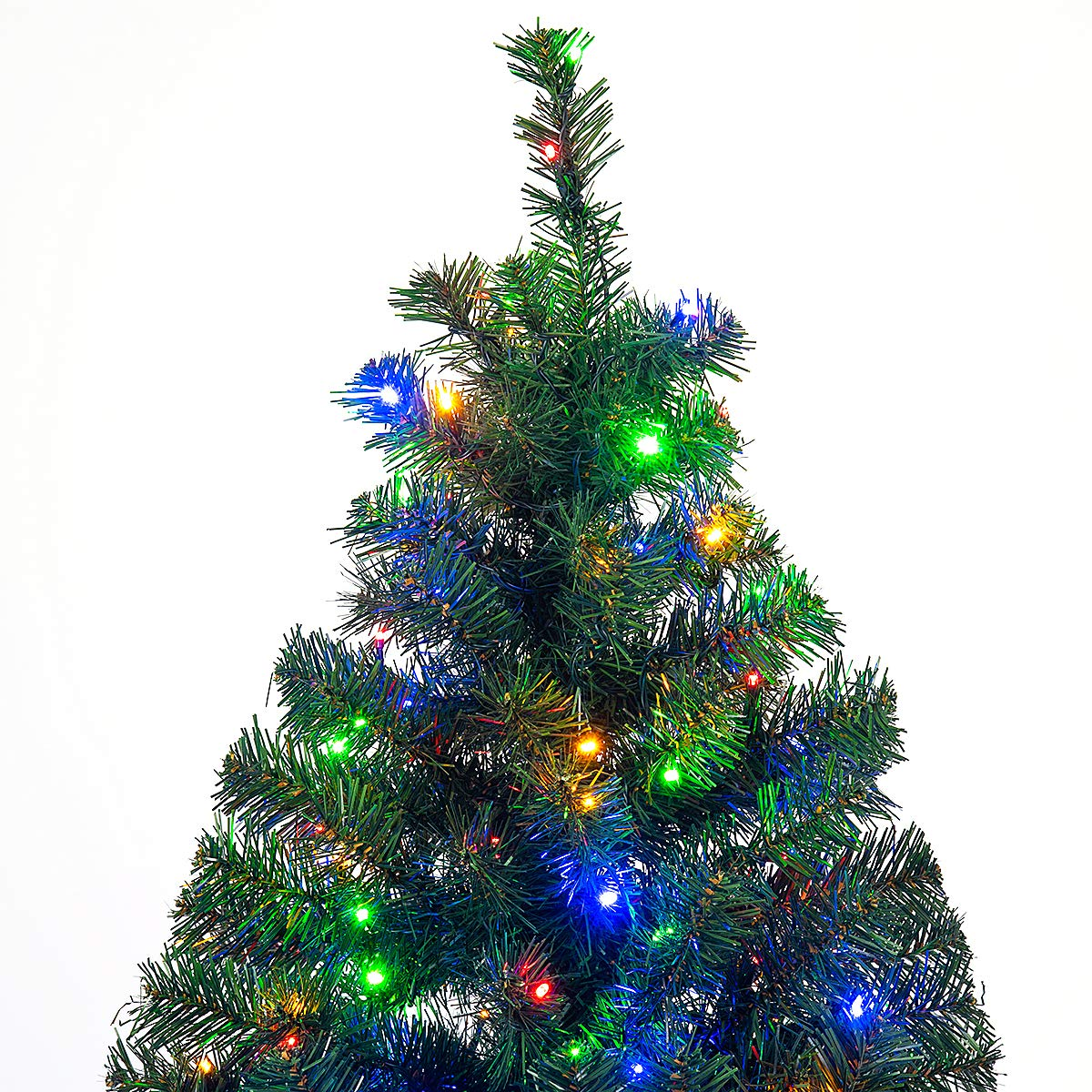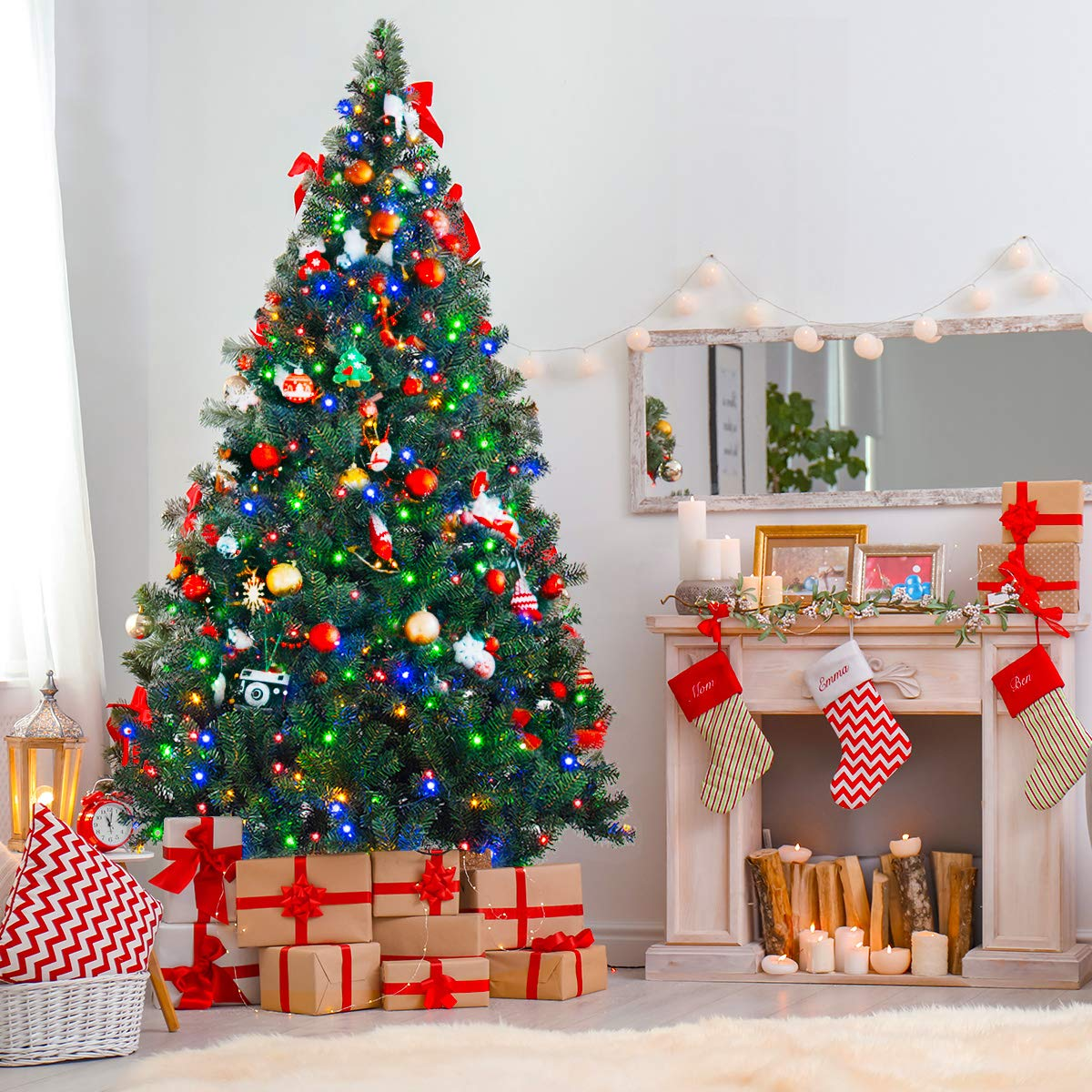 This is our brand new and high-quality 7.5 ft Christmas tree which is perfect for adding a festive glow to a home, office, party, etc. 1075 branch tips and 550 colorful led lights make this tree look more full-bodied and genuine. Made of fade-resistant and crush-resistant PVC materials, this Christmas tree can be used for a long time. The sturdy metal trunk and stand to make the Christmas tree stand more straight and stable. In addition, our Christmas tree is divided into four sections for easy assembly, disassembly, and storage. Don't hesitate to buy it now!
