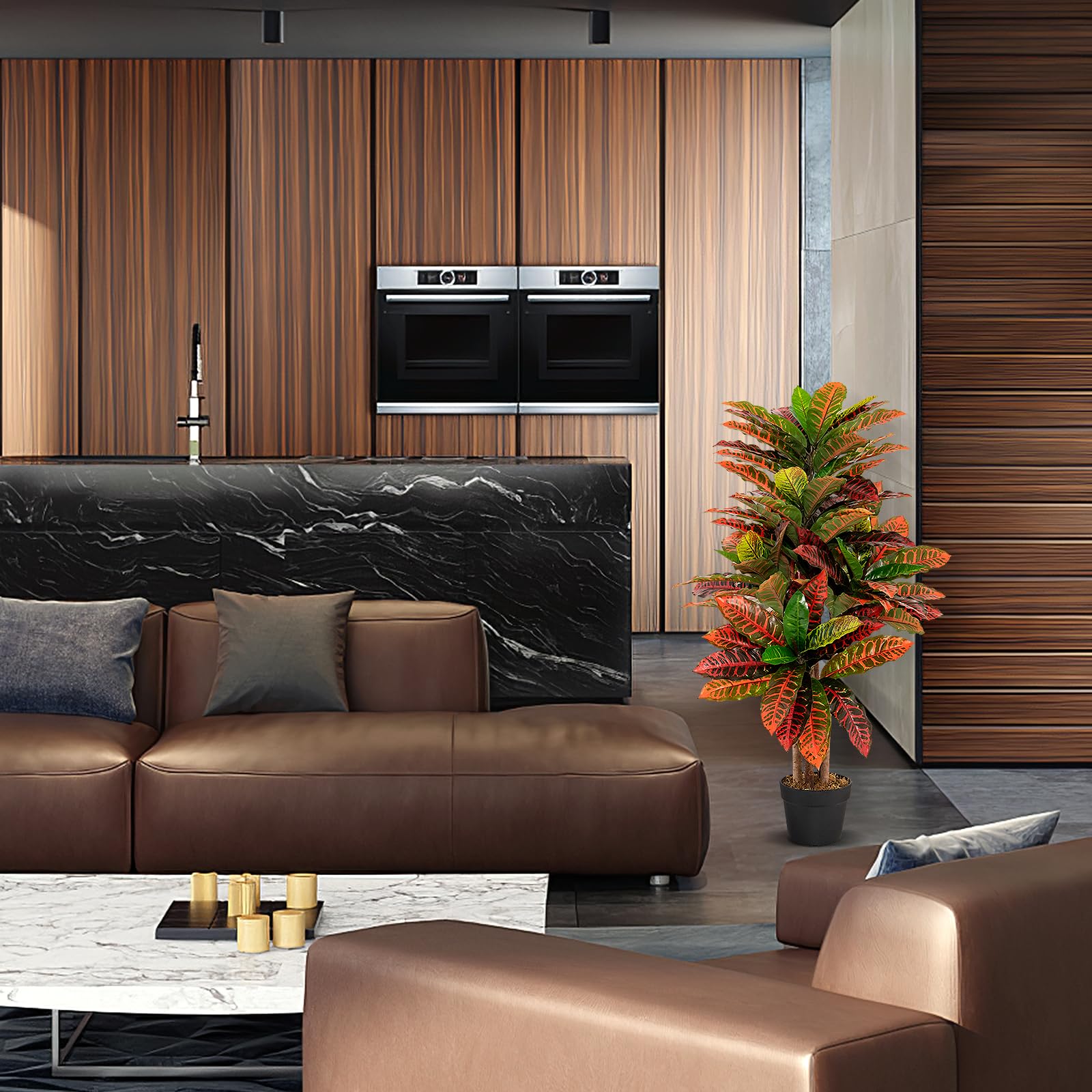 Introducing our lifelike artificial Codiaeum plant, the perfect solution to bring vibrant charm into any space. With its lush variegated leaves, natural wood trunks, and realistic moss, this plant provides an authentic and visually appealing alternative to live plants. Crafted with premium rubber and plastic fabric, this artificial tree is not only top-notch in quality but also highly durable, ensuring that it retains its stunning and exquisite look for years to come. The sturdy pot, equipped with built-in cement, provides stability and strength, making it suitable for any environment. With no maintenance required, this artificial plant offers a hassle-free solution for adding greenery to your space. Its versatile design allows it to be placed in various settings, creating an inviting atmosphere and enhancing the aesthetics of any space.