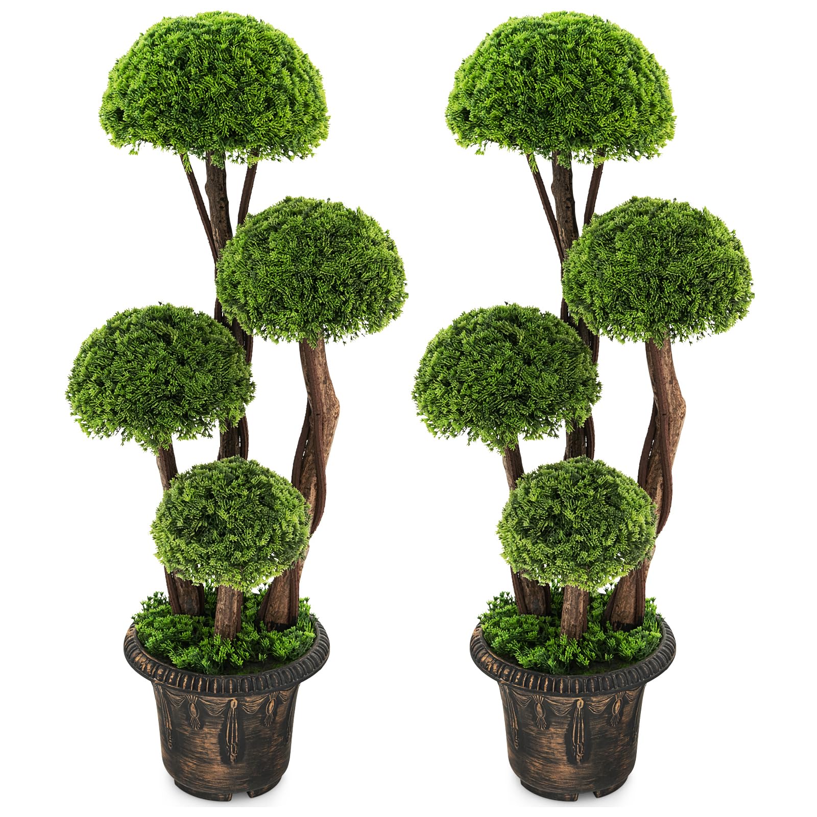 Our 3ft artificial tree features a mass of short cedar leaves with verdant color and exquisite craftsmanship, giving you a real touch feeling. Other than that, our leaves and strong trunks are crafted with premium PE material, which is non-odor and non-allergic for safe use. And it can resist sunlight and water, keeping green all year round. Thanks to the sturdy pot with built-in cement, the artificial topiary tree is stable enough to prevent wobbling or tipping over. And in contrast to real plants, our artificial tree would not be affected by seasons and there is no need to water, prune, absorb sunlight, or apply fertilizer. This fake cypress ball tree would add more vitality to your living space, such as the living room, study, bedroom, balcony, porch, office, store, etc. This vivid cypress plant can also be a perfect gift for your family, friends, colleagues, or neighbors.
