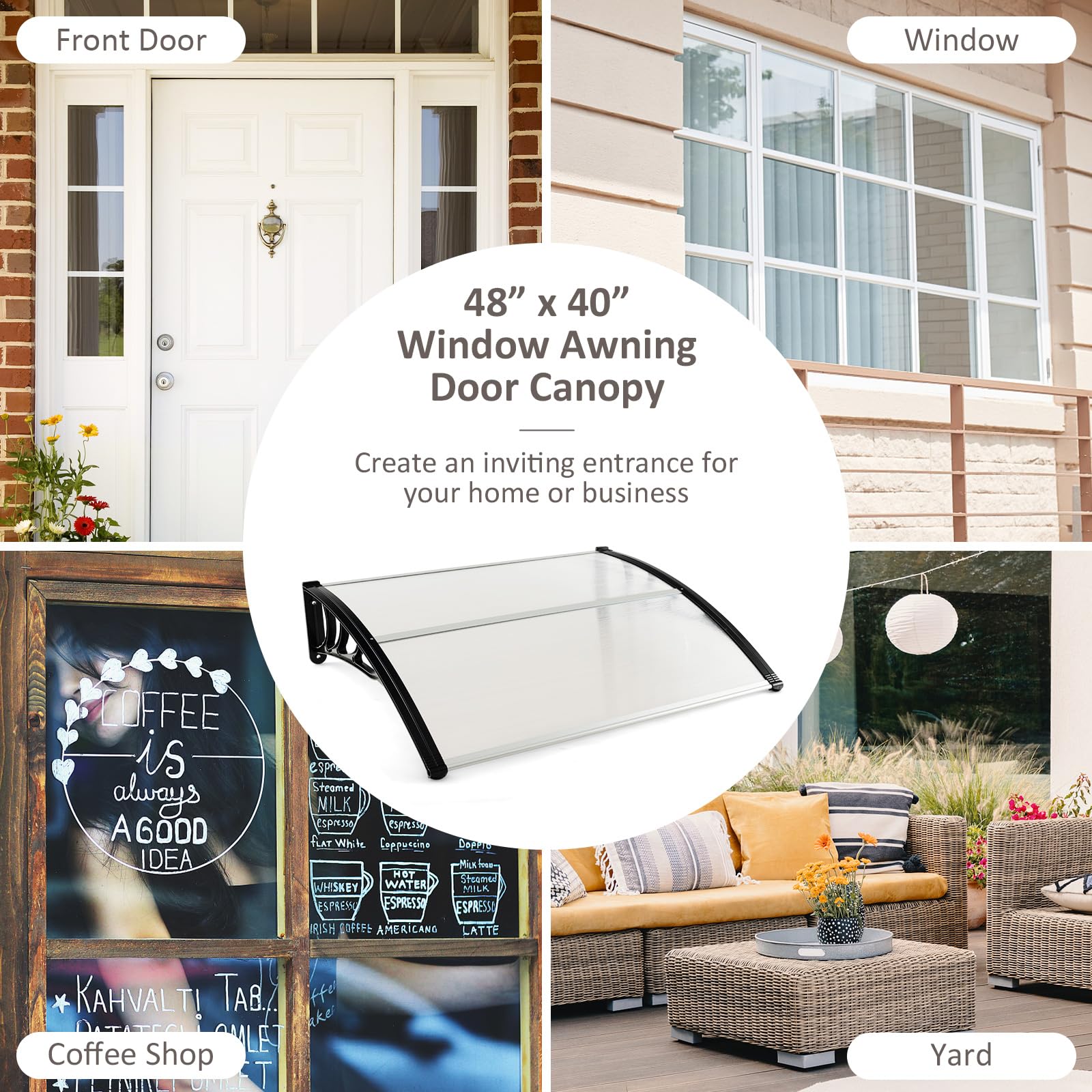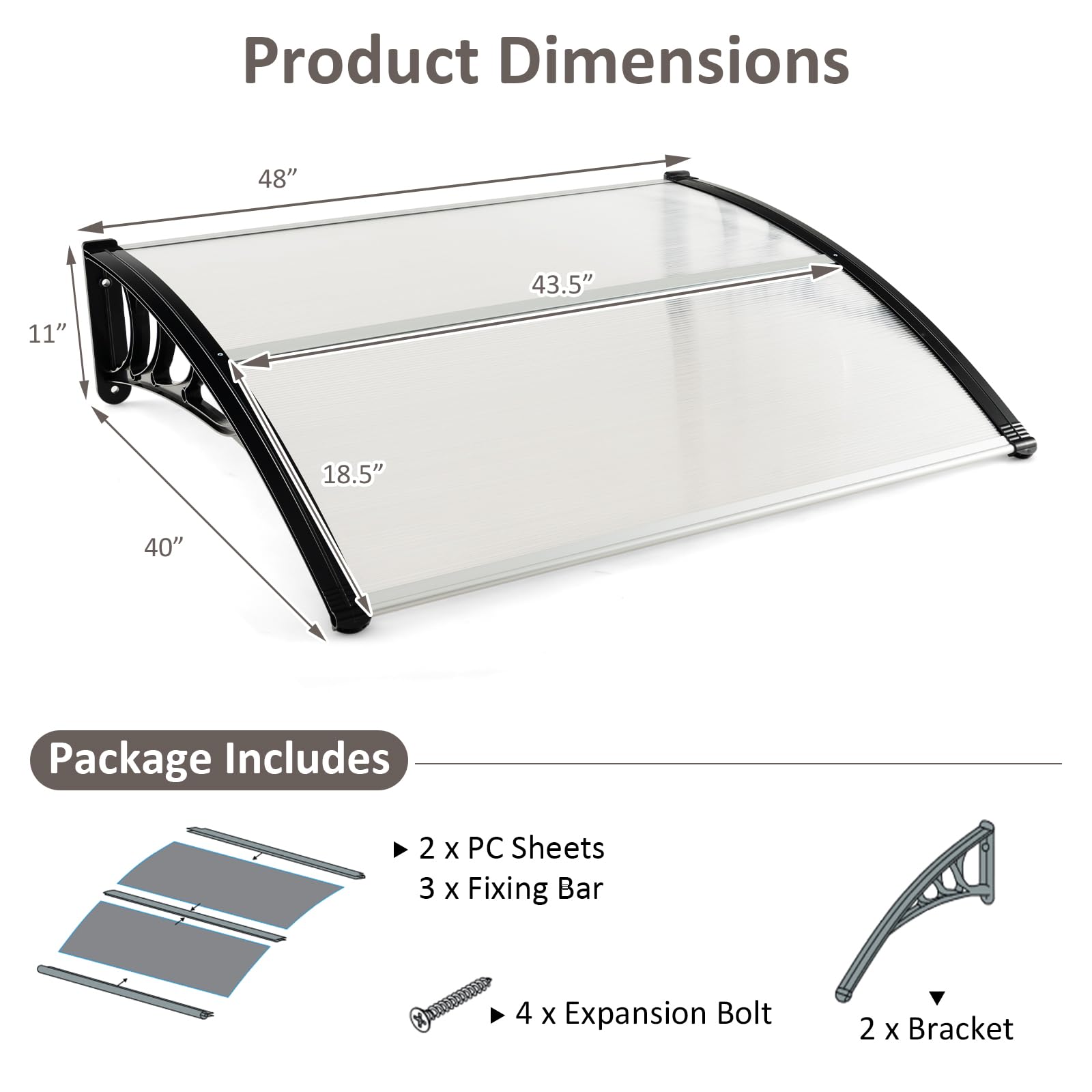 - Easy Installation: As detailed instructions and expansion bolts are included, this patio door awning is easy to put together. Best of all, the door awning is suitable for different types of walls, such as cement, wood, brick, etc. Note: Please make sure the size is correct before purchasing.?
