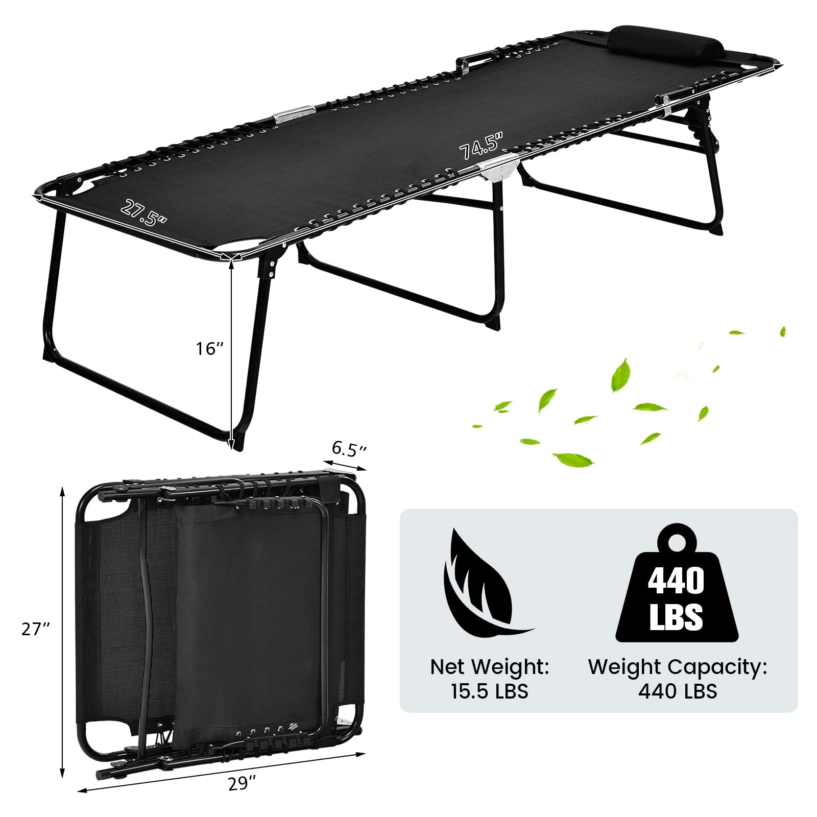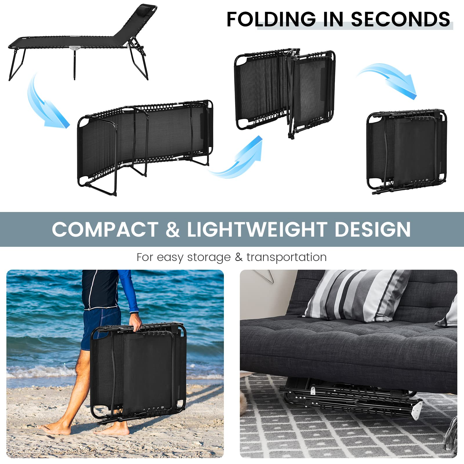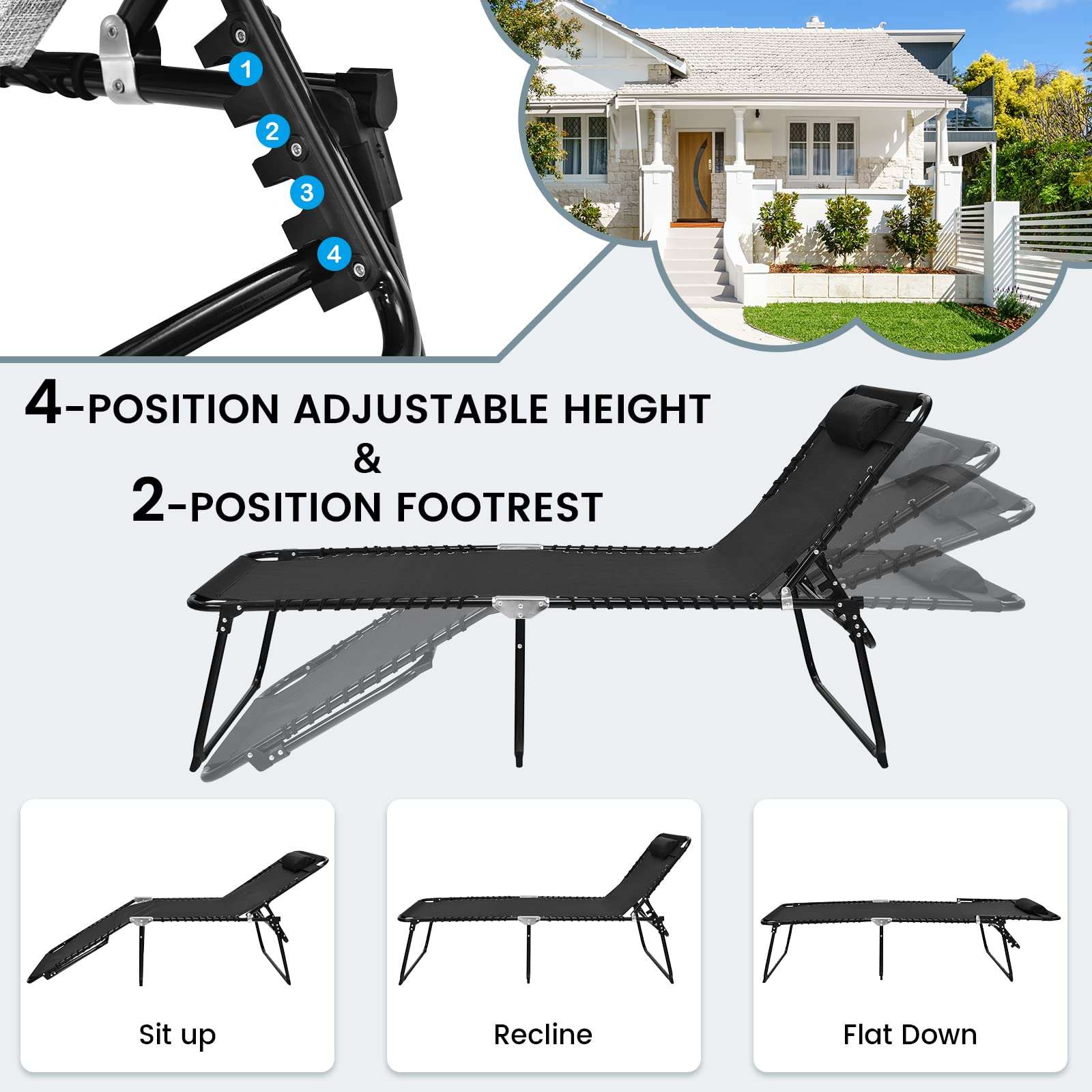 Flexible Adjustment: Featuring 4-level adjustable backrest, the folding lounge allows you to relax with maximized comfort whether you want to read, take a sunbath or sleep. And the footrest can be also put down according to your demands.