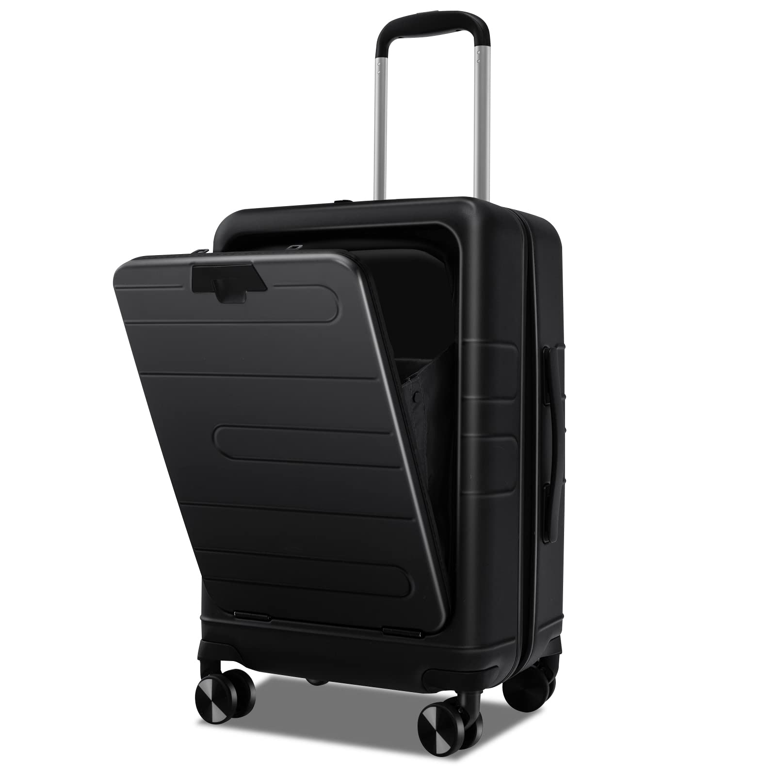 • Convenient Front Pocket Compartment: The 20"carry-on luggage is designed with an extra front pocket for quickly accessing your electronics, which is easy to store and take out when you need them. It features 4 compartments for keeping your 15.6 inches laptop, iPad, ID cards, boarding passes, and other belongings in order and partitioned.