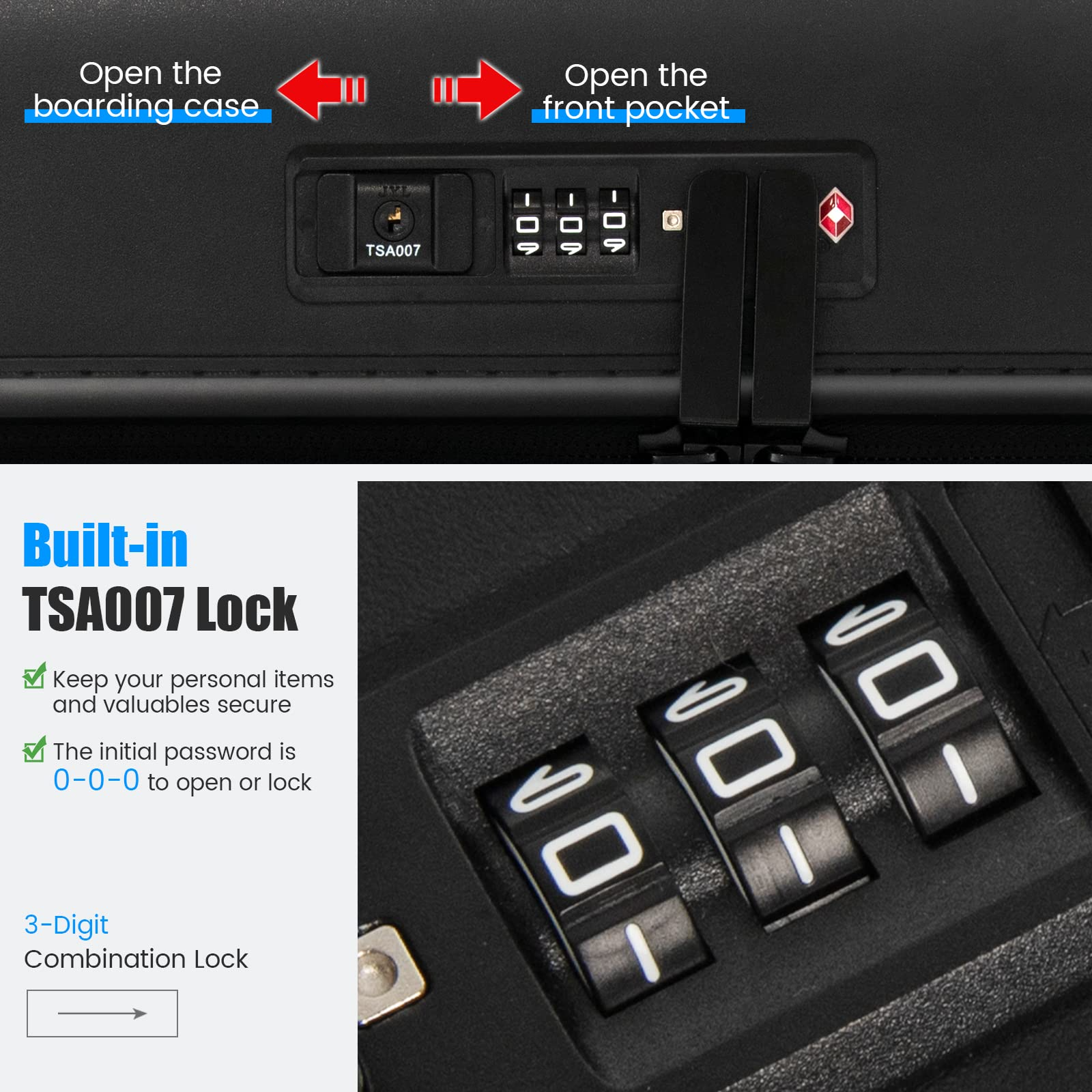 • TSA007 Lock & Premium PC Hardshell: There is a built-in TSA007 lock on the top to keep your items and valuables secure, which meets most domestic and international airline regulations. Besides, the suitcase consists of an impact-resistant and scratch-resistant PC hardshell, providing durable protection for your items.