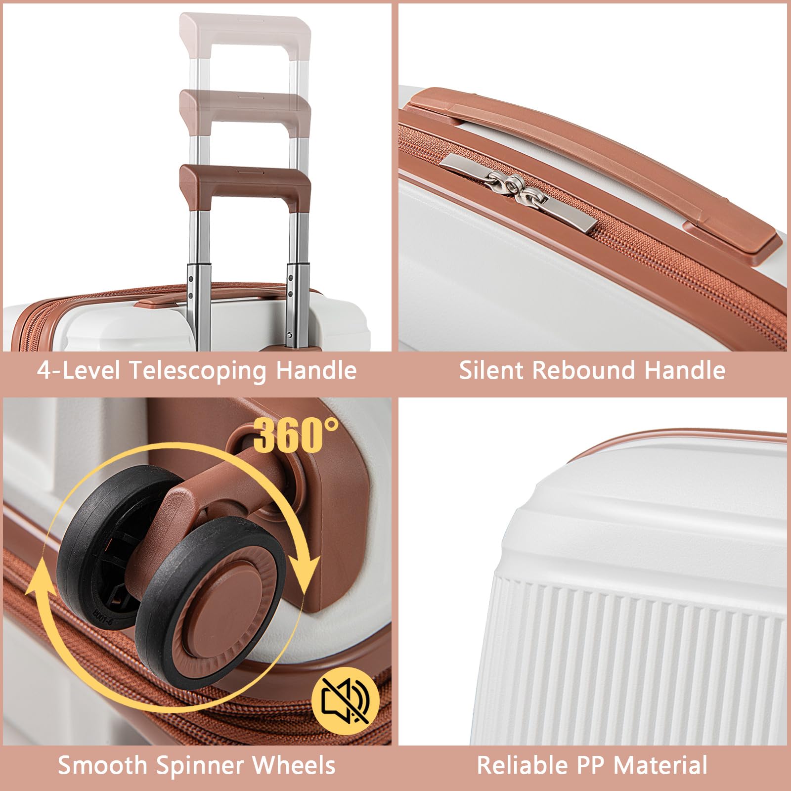 - ?【Reliable Material】 Constructed from lightweight yet tough PP material, this luggage set is built to withstand impact and the rigors of travel better than traditional ABS. Besides, it adopts a gloss wave surface with frosted textures, offering a modern and sophisticated look to your travel gear.