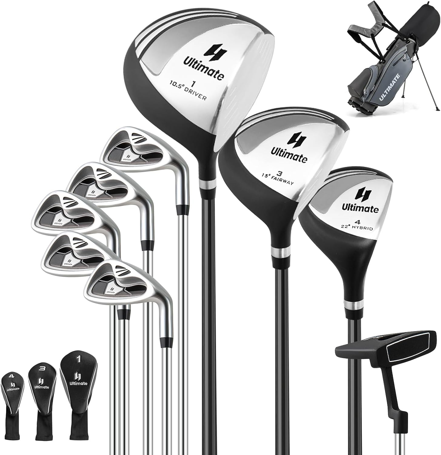 This set is tailored to offer a wide range of clubs necessary for both beginners and experienced enthusiasts, including a 460CC #1 driver, a #3 fairway wood, a #4 hybrid, #6, #7, #8, #9, and #P Irons and a precision-engineered putter equipped with an alignment line. Besides, it comes with 3 matching head covers to keep the woods always protected.