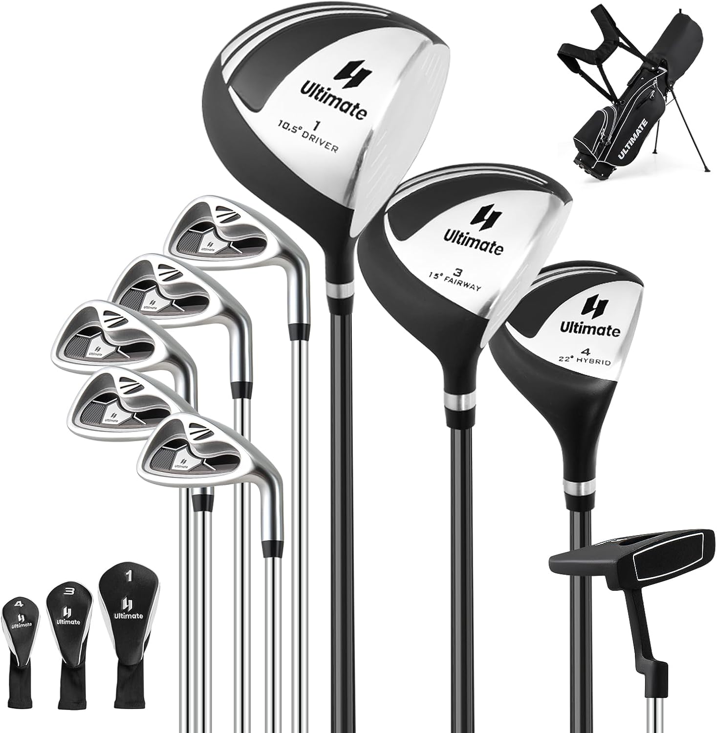 - 【9-Piece Complete Golf Set】 This men’s golf club set consists of #1 driver, #3 fairway, #4 hybrid, #6 & #7 & #8 & #9 & #P irons and putter. What’s more, each wood is equipped with a head cover for better protection.