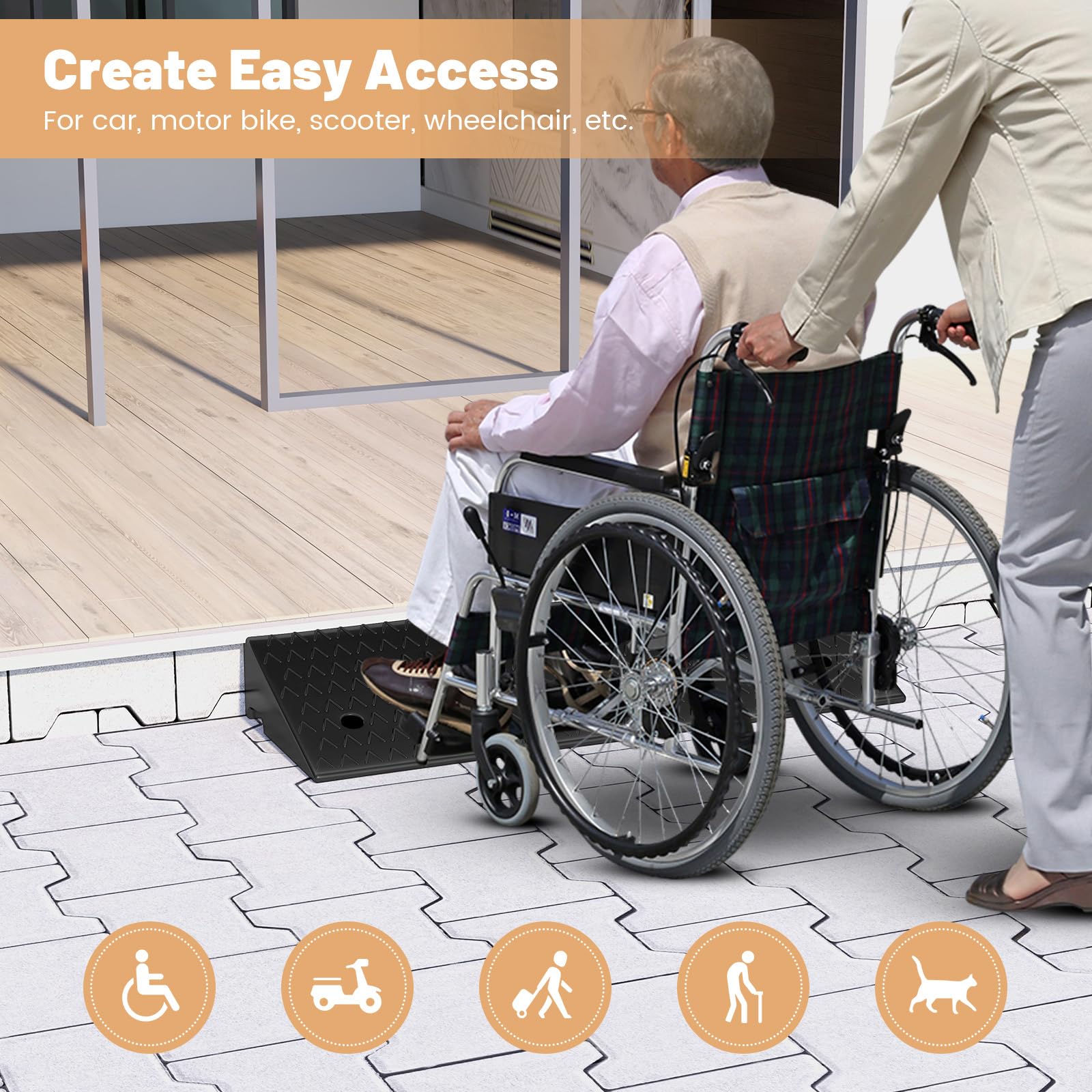 - Multifunctional Curb Ramps: Designed with a gentle 20.5° incline, these ramps are perfect for driveway, threshold, parking lot, warehouse and so on, which create easy access for car, motor bike, scooter, wheelchair, etc. for diverse daily usage.
