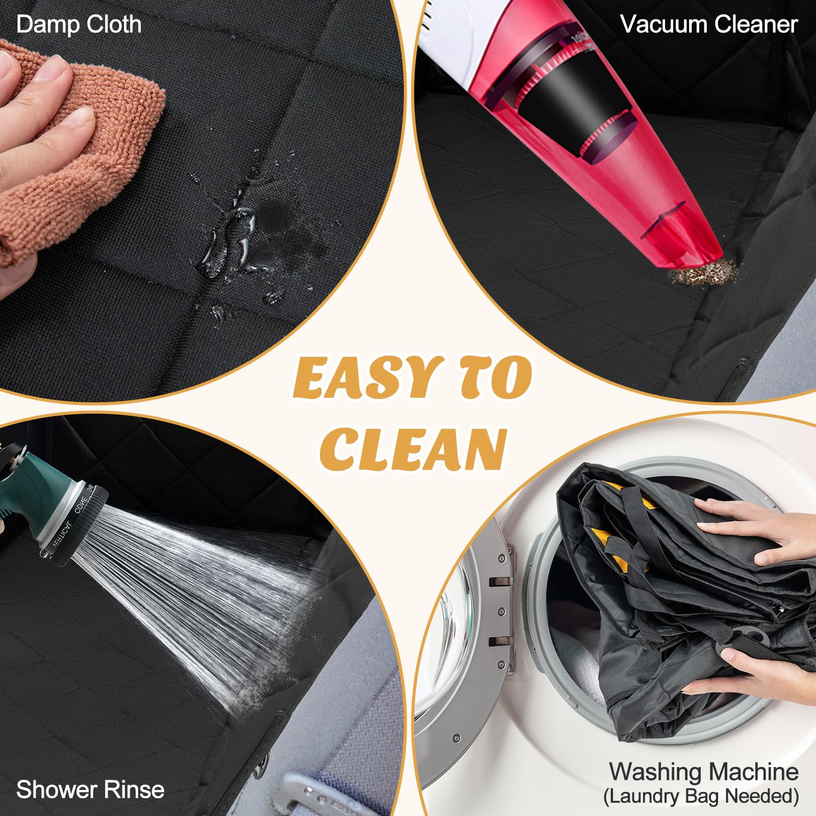 This half pet car seat for small and medium dogs is designed to provide comfort and protection during car rides. It adopts scratch-resistant and water-repellent oxford fabric covering and non-slip PVC bottom, ensuring superior strength and stability. And the seat comes with a removable pad with one waterproof side for protecting against drool and one soft side for adding coziness and comfort. Furthermore, it comes with 2 mesh windows, providing ventilation and allowing your pet to enjoy the view. And the inside safety belt could ensure their security during travel. For reinforced stability, it is equipped with anchors fixing buckles, keeping the car seat cover secure in place while allowing for easy installation. Cleaning is a breeze with options such as vacuum cleaning, shower rinsing, or gentle machine washing (using a laundry bag). And the cover also offers a 4-in-1 design, functioning as a dog hammock, car bench cover, car trunk cover, and even a picnic blanket.