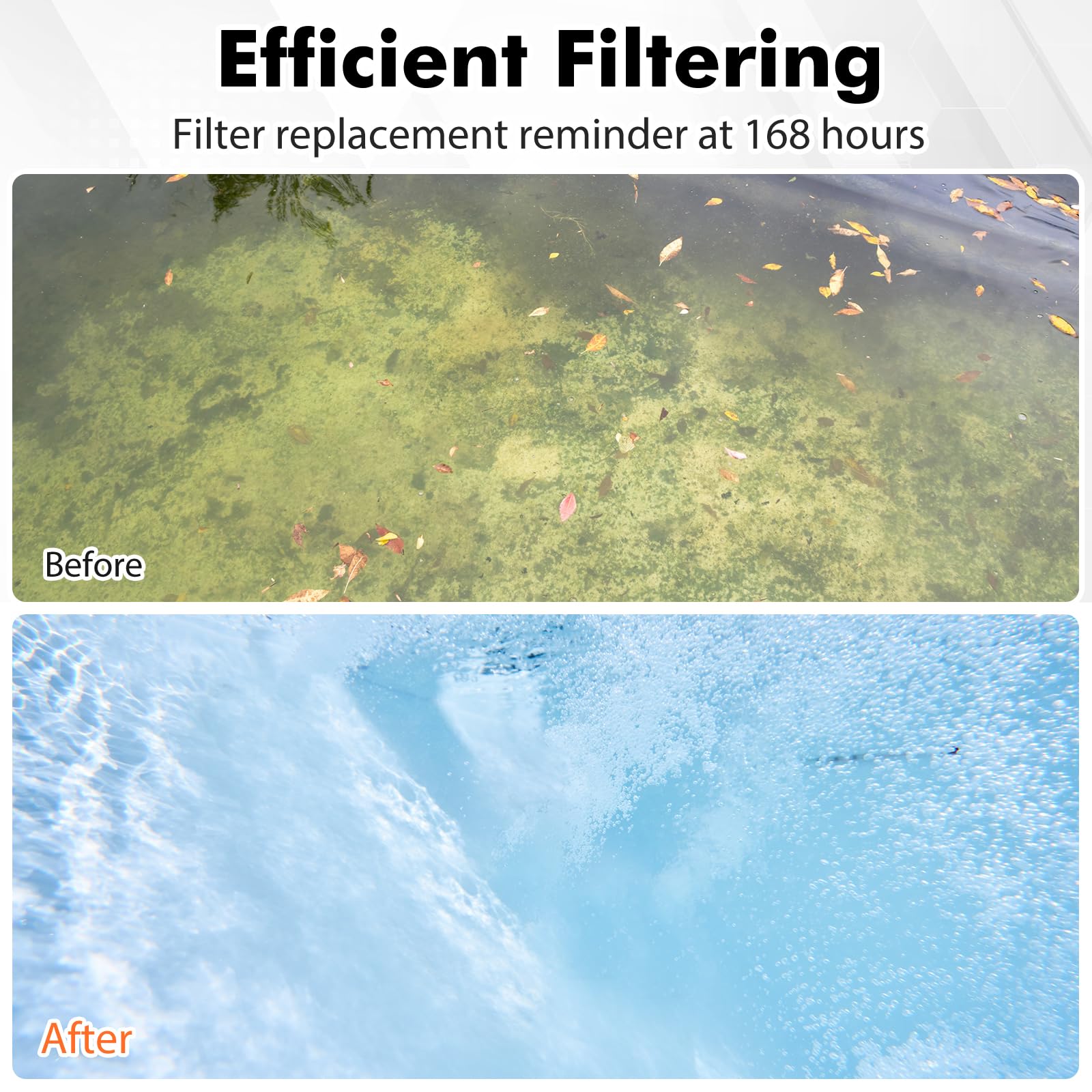 - ?【Premium Filtration System】 The SPA heater is powerful to achieve efficient filtering and maintain crystal-clear water. In addition, it comes with an auto filter replacement reminder after 168 hours of filtration.