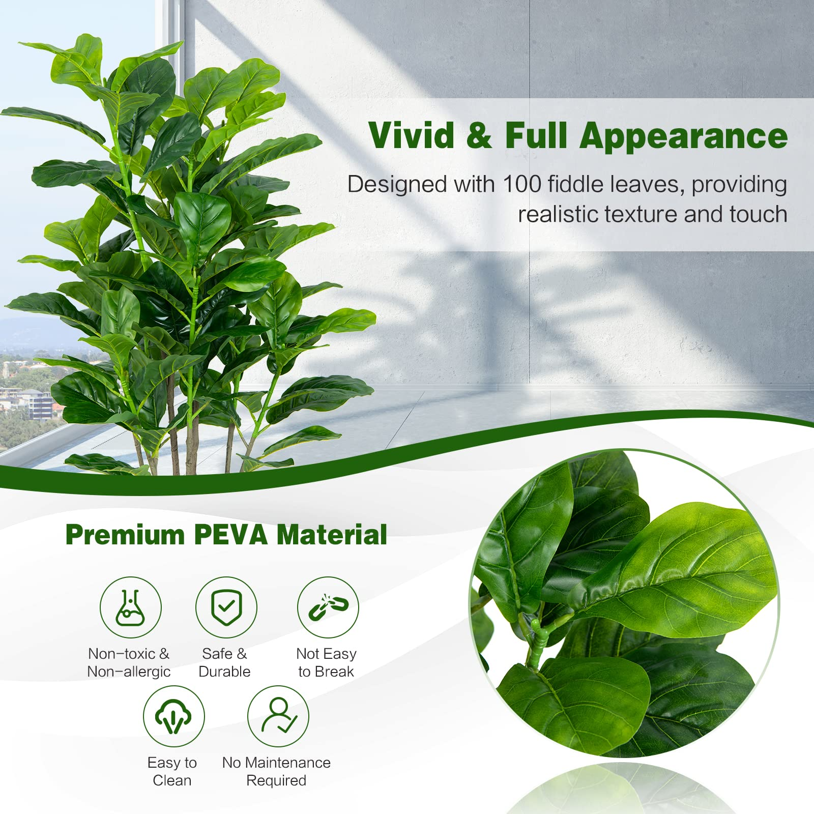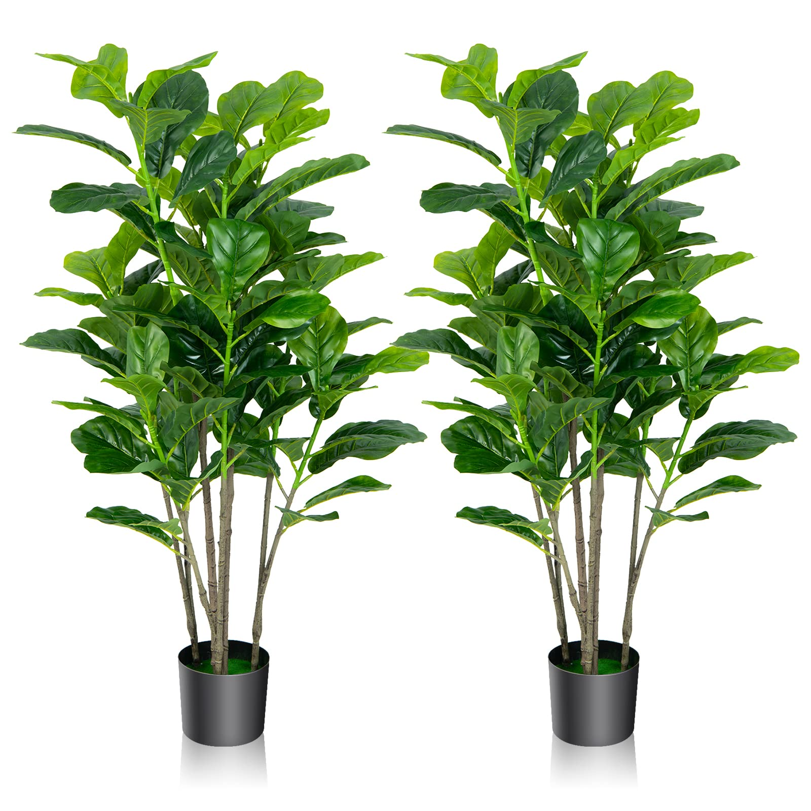 Our 2-pack artificial fiddle leaf fig tree is the ideal choice for decoration, which can be a highlight of your living space while requiring no maintenance. There is no need to spend time and effort on watering, pruning, or fertilizing, it would stay evergreen and vibrant throughout the seasons. Comes with 100 large fiddle leaves, the faux plant showcases a full and luxurious appearance. And with the clear visible meridians and vibrant colors, it looks more realistic. In addition, the leaves are made of premium PEVA material that is not only non-allergic and safe to use but also sturdy and not easy to break, ensuring long-time use. And to prevent kids or pets to knock over the flower pot accidentally, the pot is filled with solid cement, ensuring more stability. Our artificial tree is the perfect decoration for your living room, bedroom, study, or commercial space such as restaurants, offices, cafes, or clothing stores.