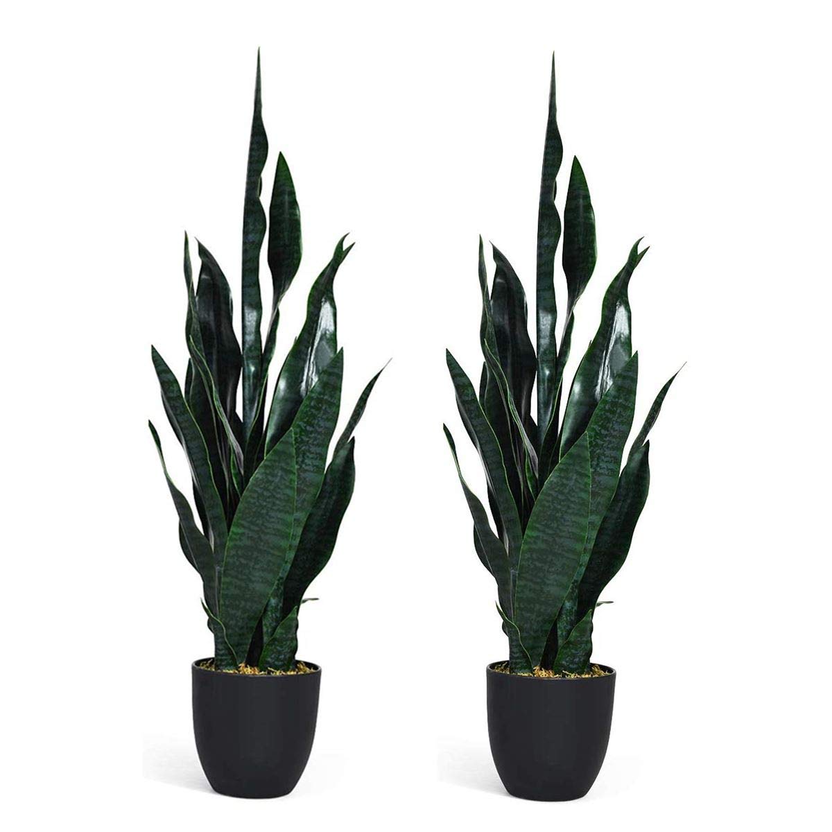 Goplus Fake Snake Plant, 2 Pack 36" Tall Artificial Potted Floor Plant