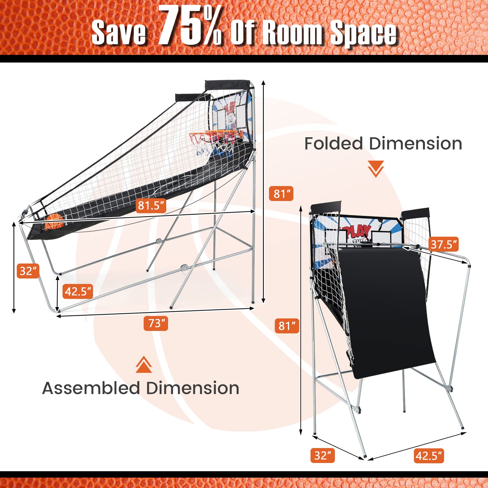 Enjoy happy game time with this foldable dual-shot basketball arcade game machine!