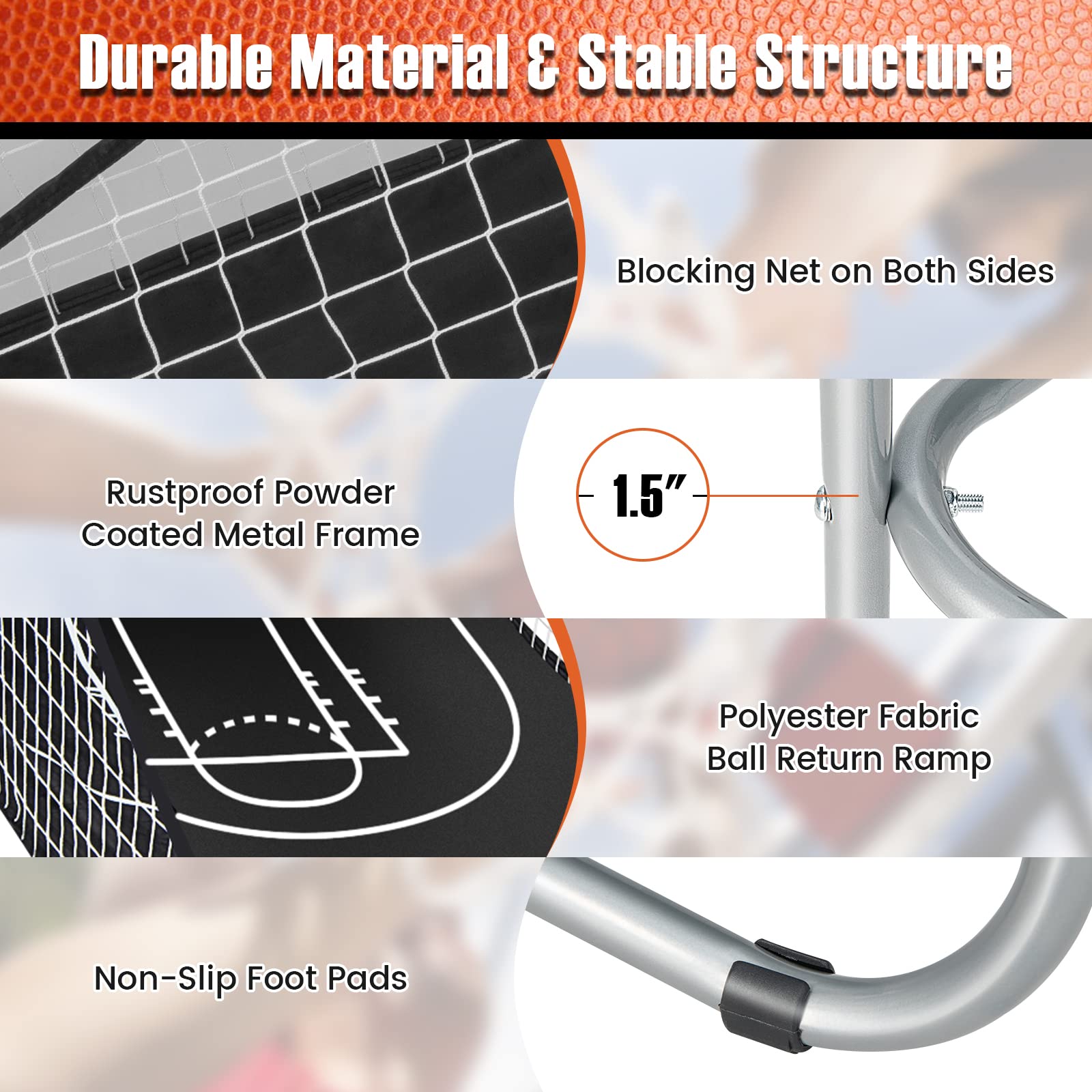 - High-Quality Materials: Supported by a powder-coated & rustproof metal frame and anti-slip foot pads, this basketball arcade game machine ensures high stability. The shatterproof and solid backboard, 12.5" metal rim, and durable nylon net can withstand thousands of shots. Plus, the high-density blocking net and anti-wear polyester fabric ball return ramp has a long service life.